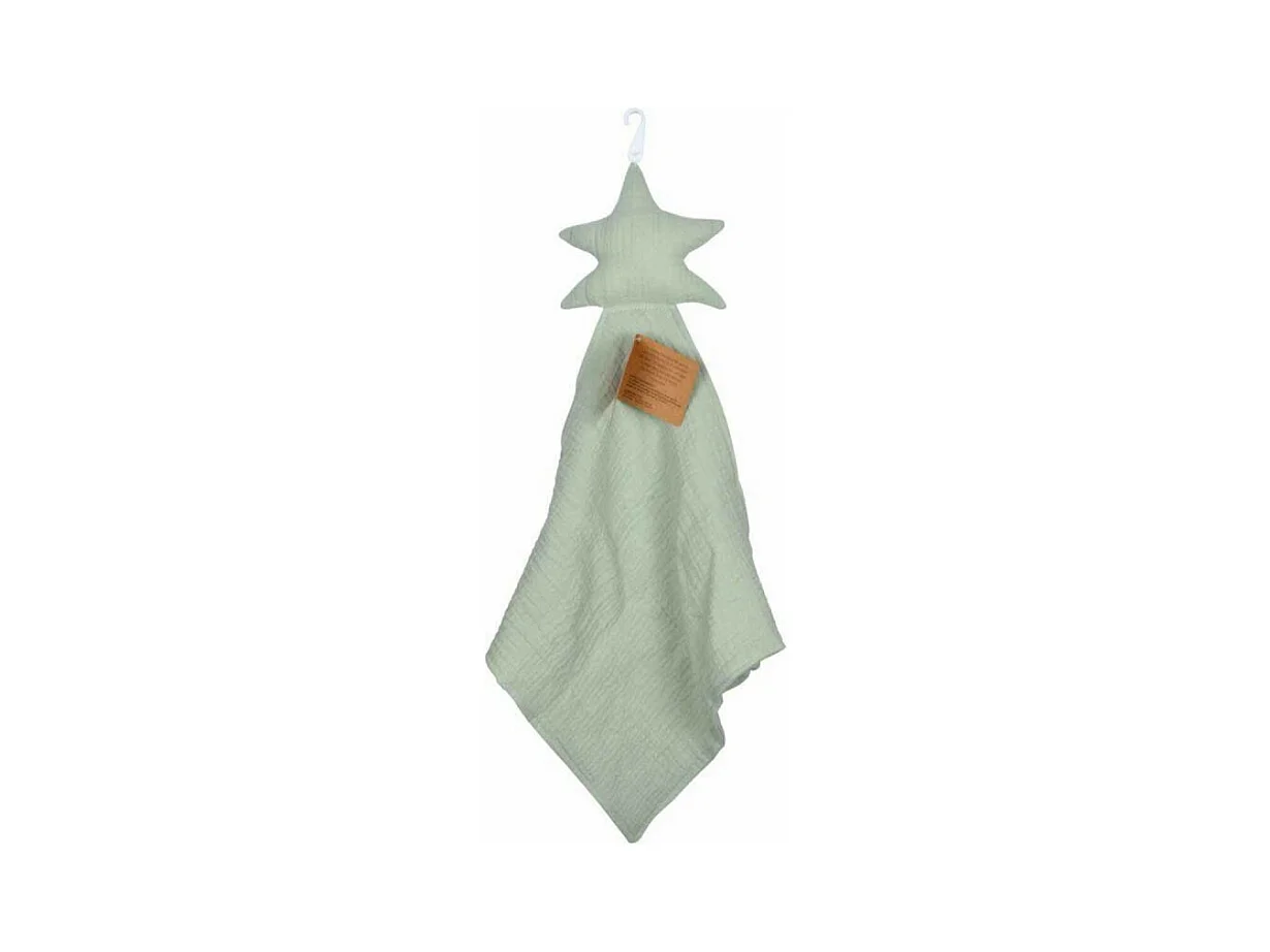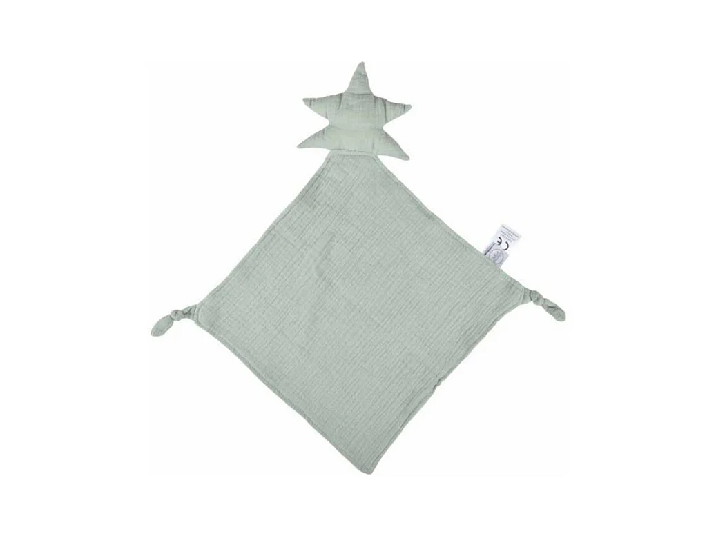 Doudou mouchoir "Étoile" en gaze de coton - Vert céladon - l 30 x L 46 cm
