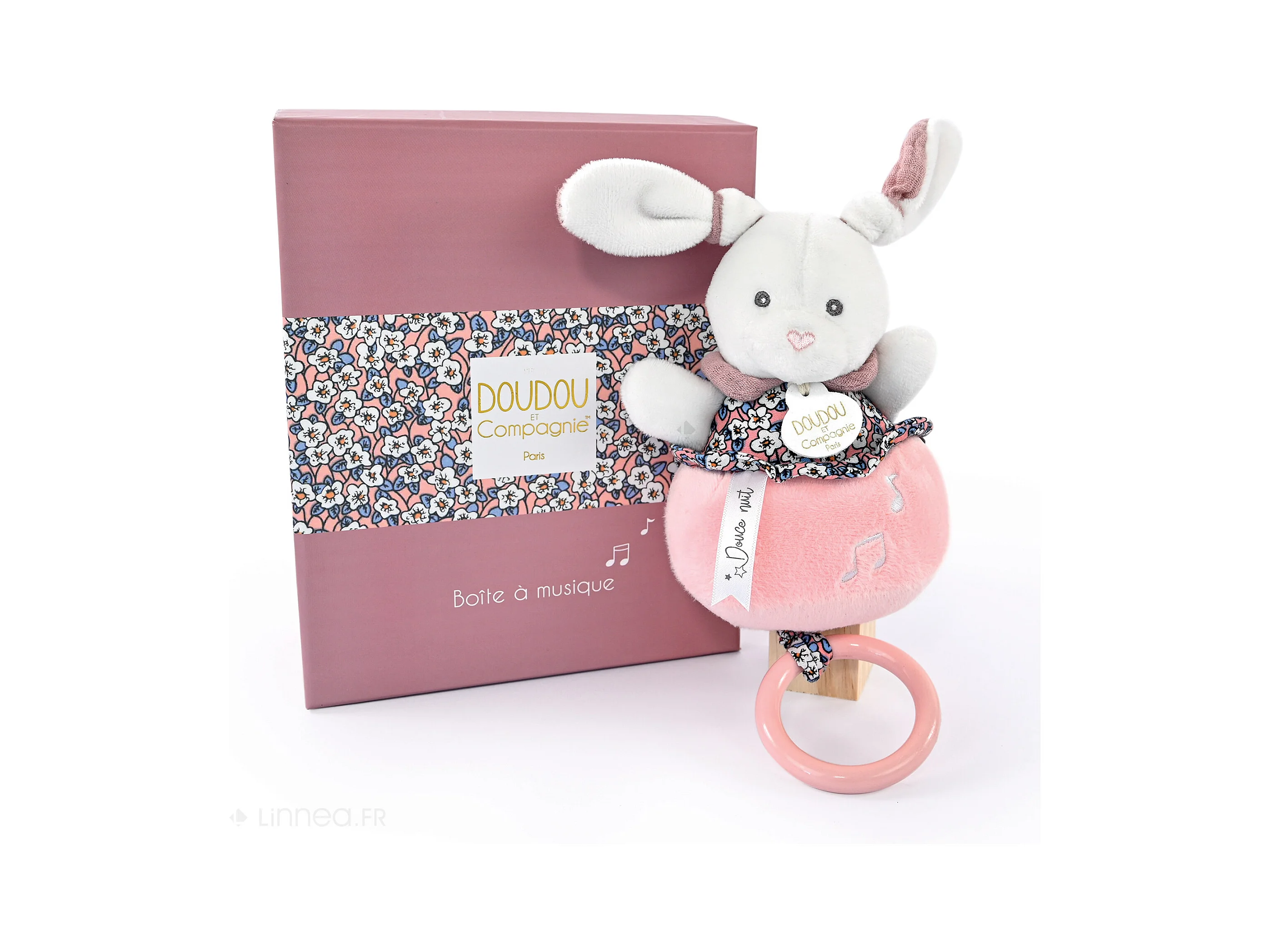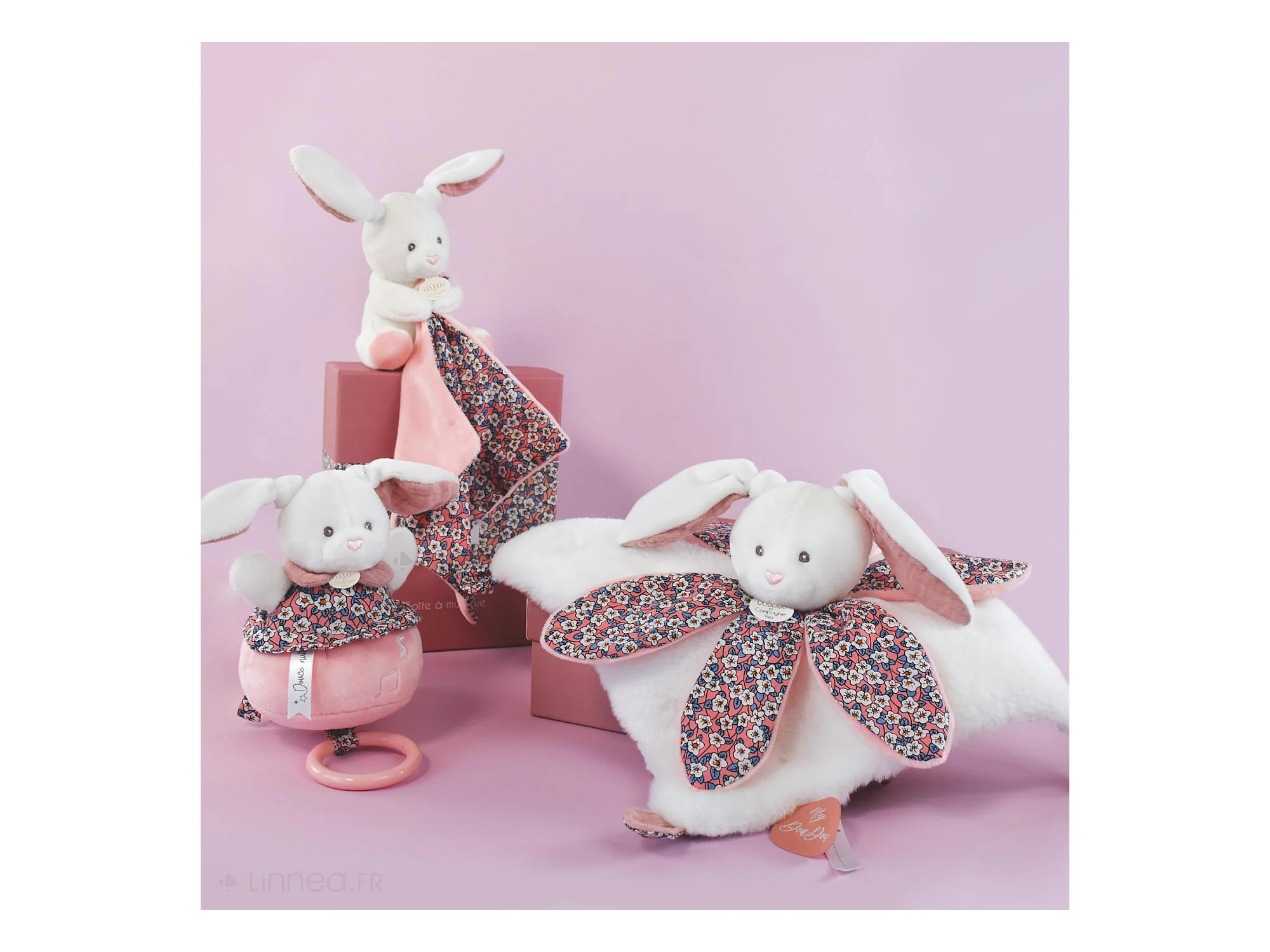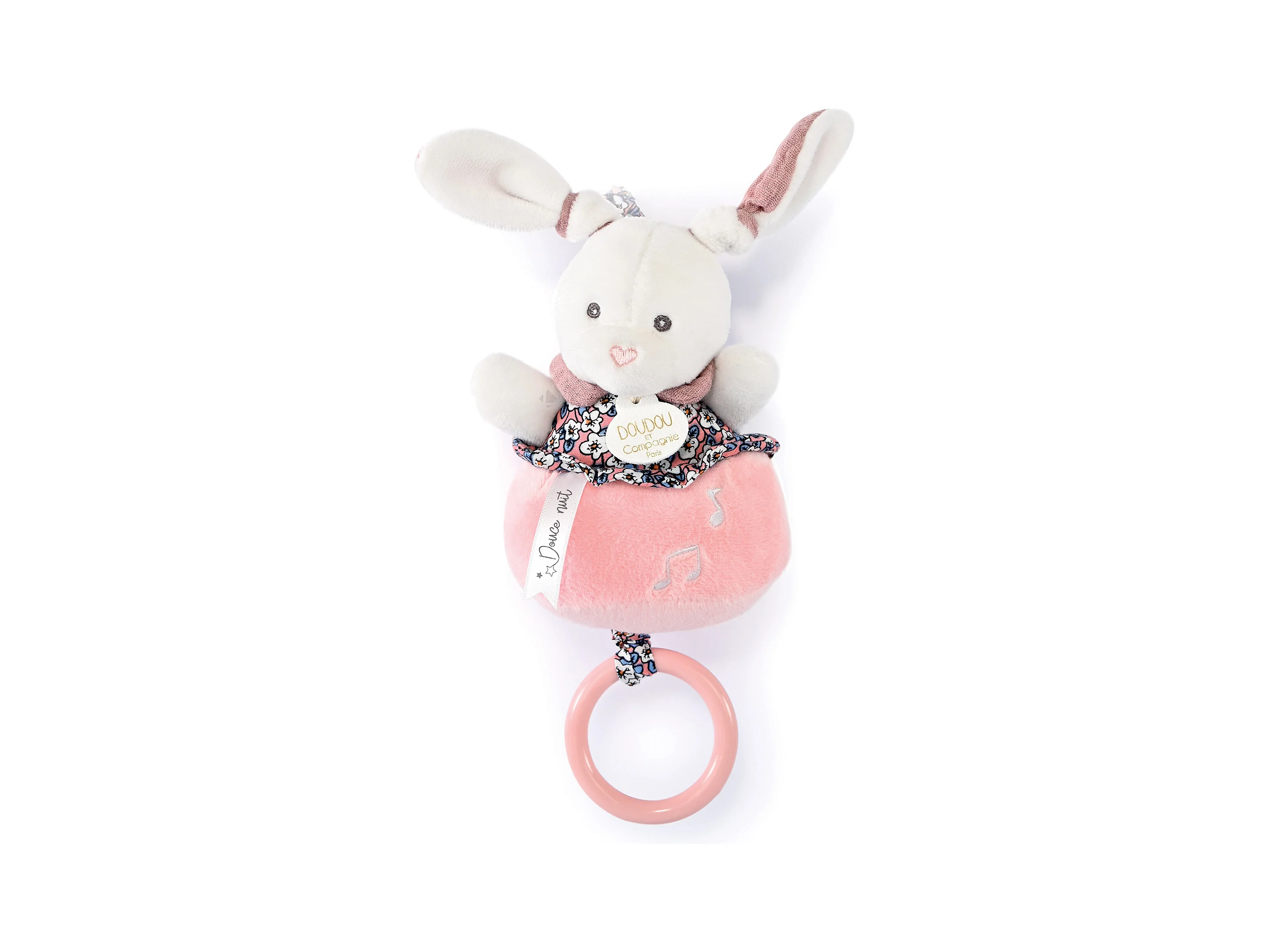 Doudou musique 14 cm polyester BOH'AIME lapin rose multicolore