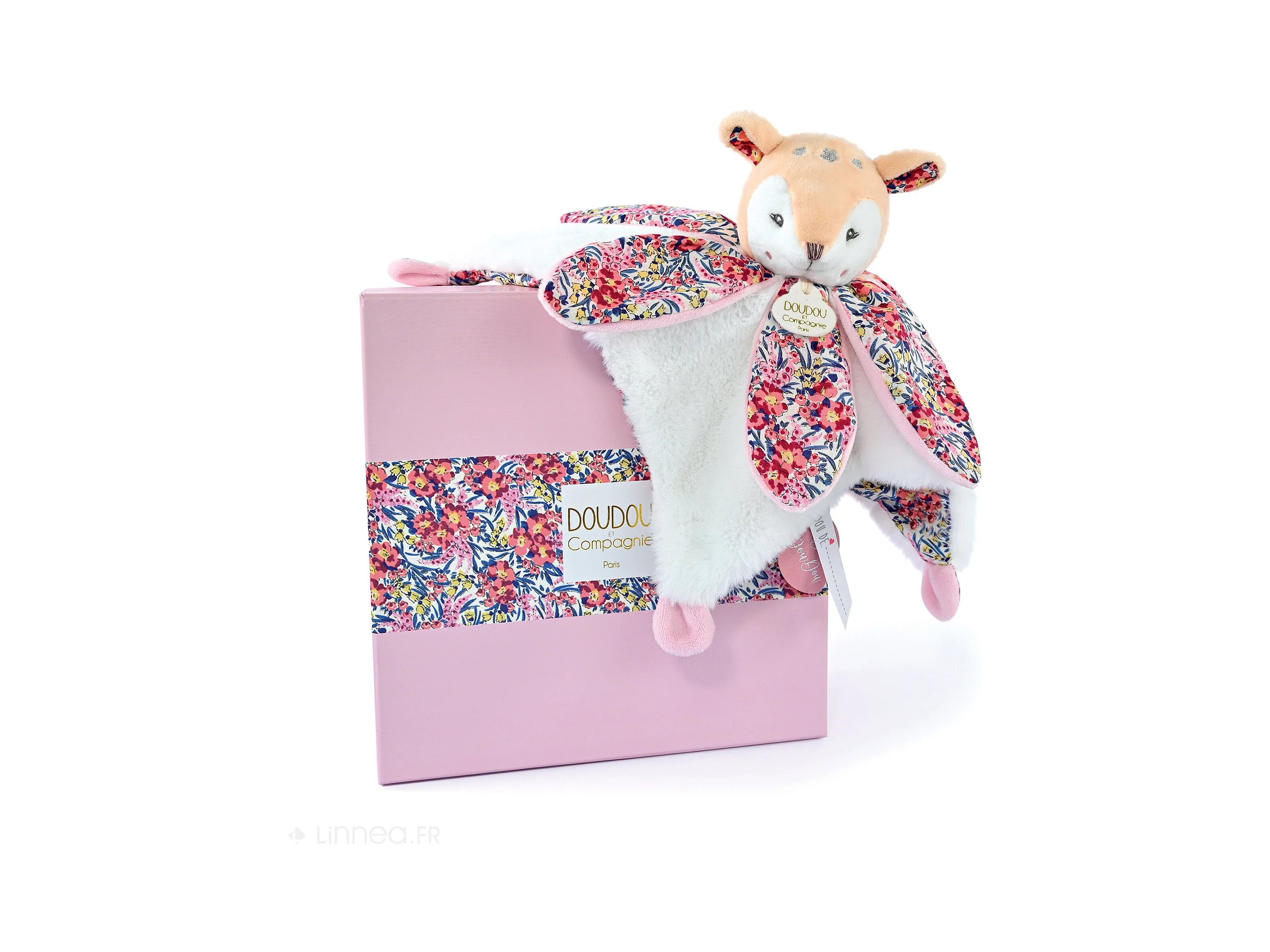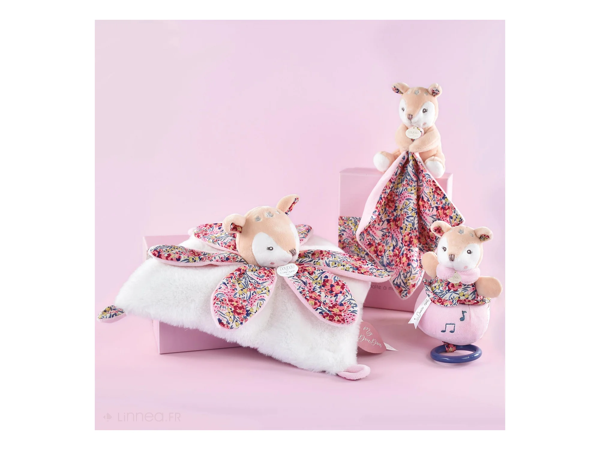 Doudou pétale 27 cm polyester BOH'AIME faon rose multicolore