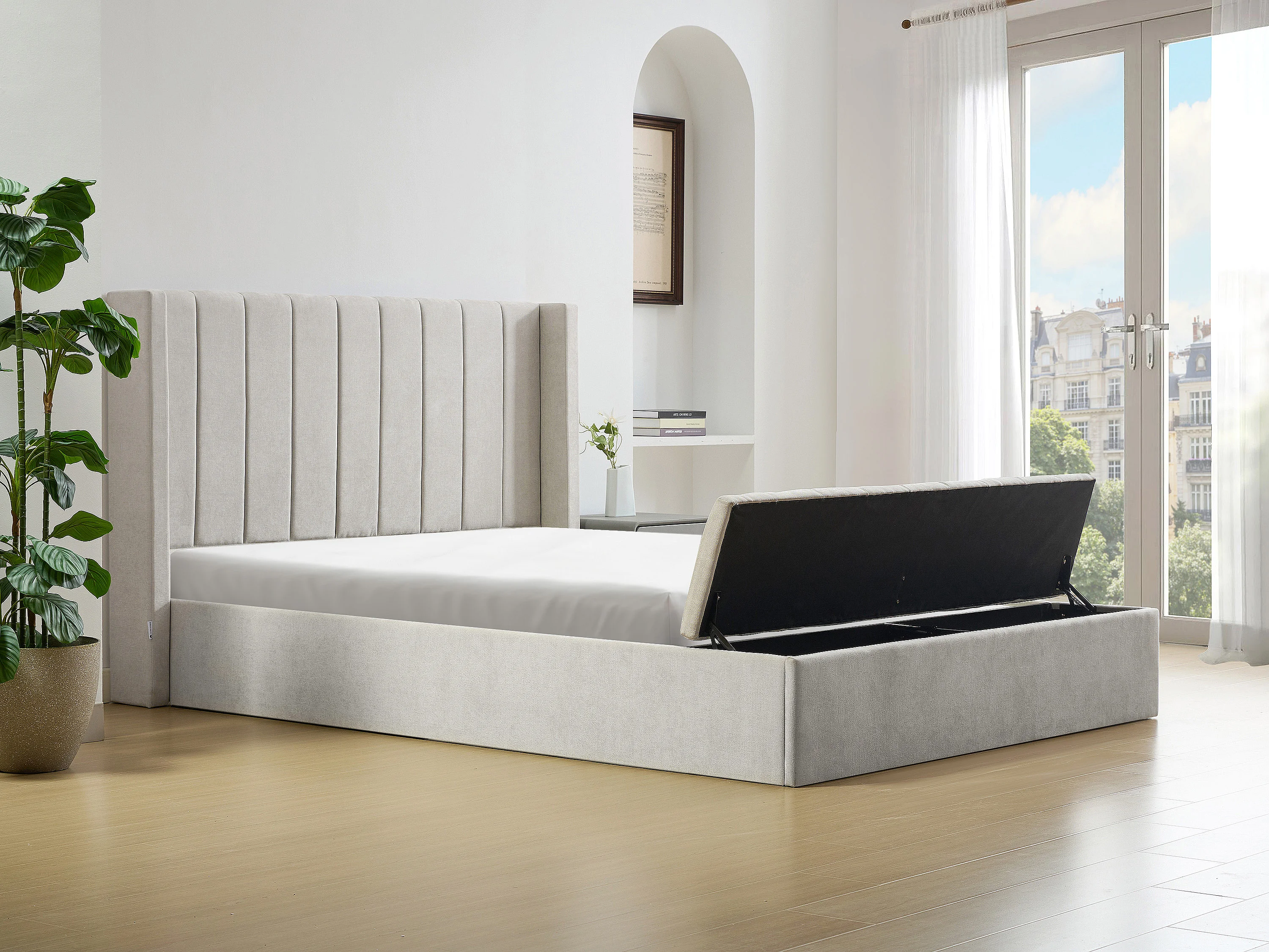 Lit coffre 180 x 200 cm avec banc - Tissu - Beige - DOUINO
