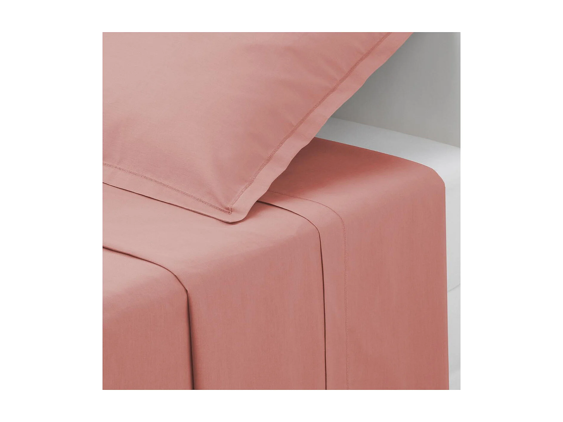 Drap plat 2 Personnes en Coton Rose blush 240 x 290 cm