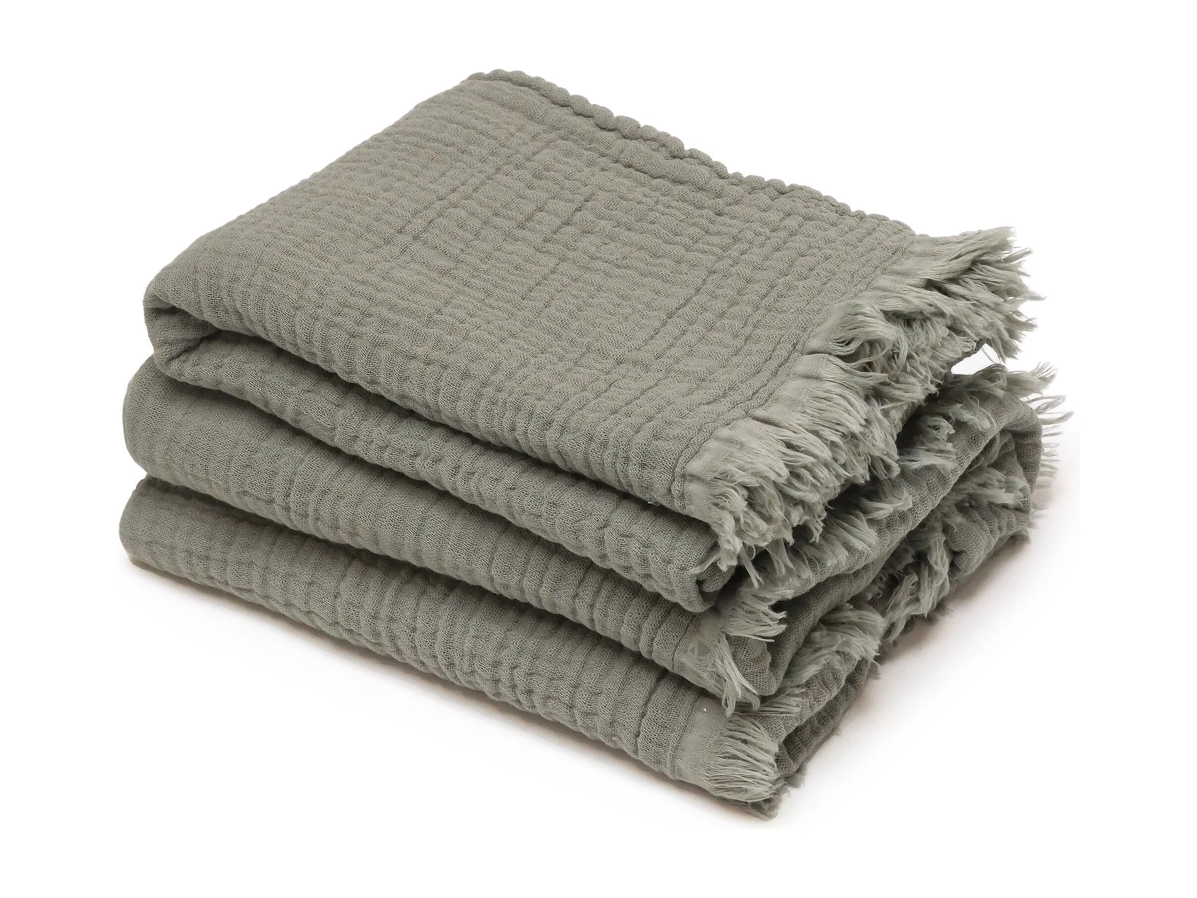 Drap de douche 70x130 cm et serviette 50x90 cm KEA mousseline de coton vert kaki