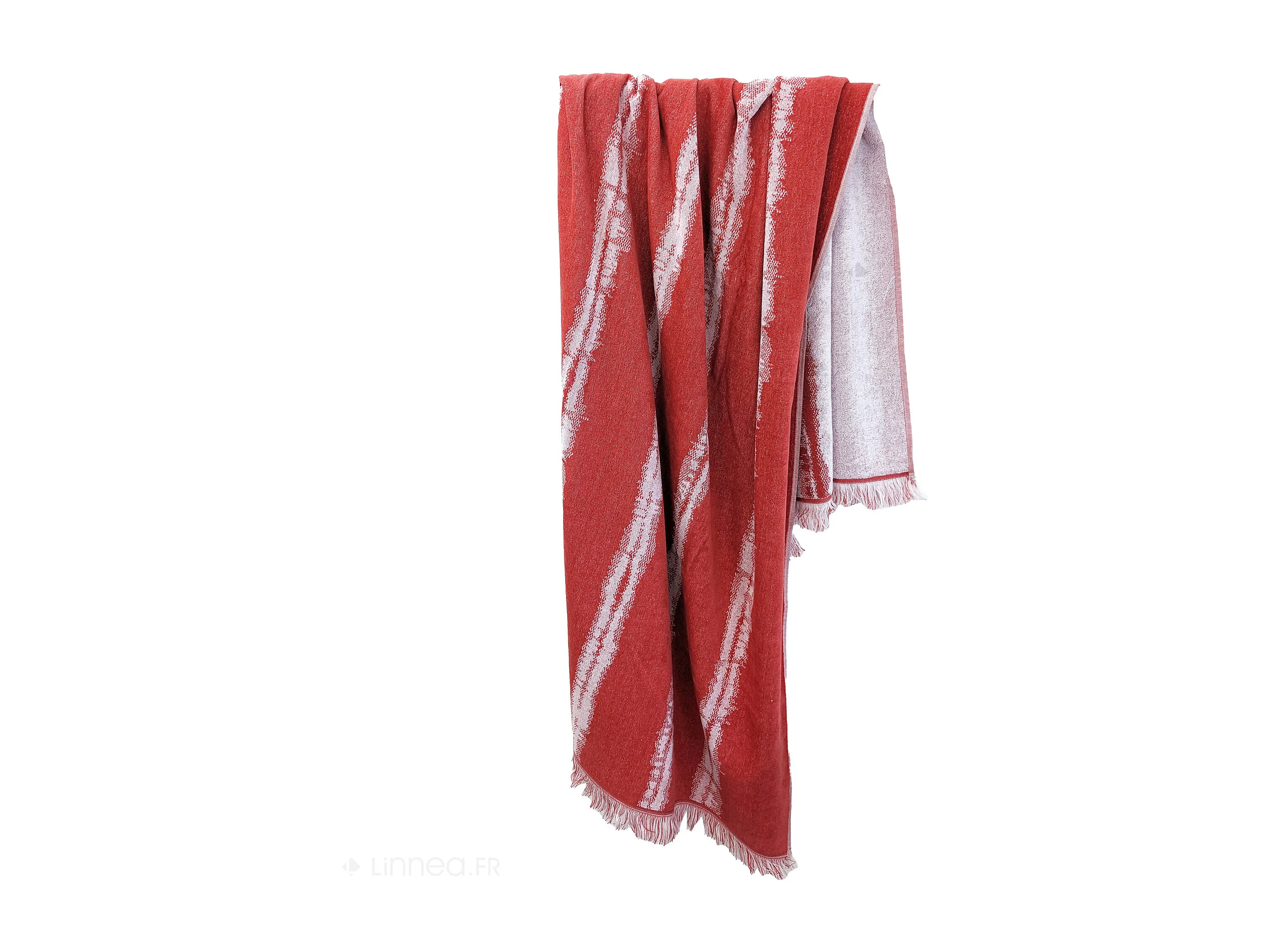 Drap de plage 100x180 cm en velours de coton ZANNONE rouge à rayures