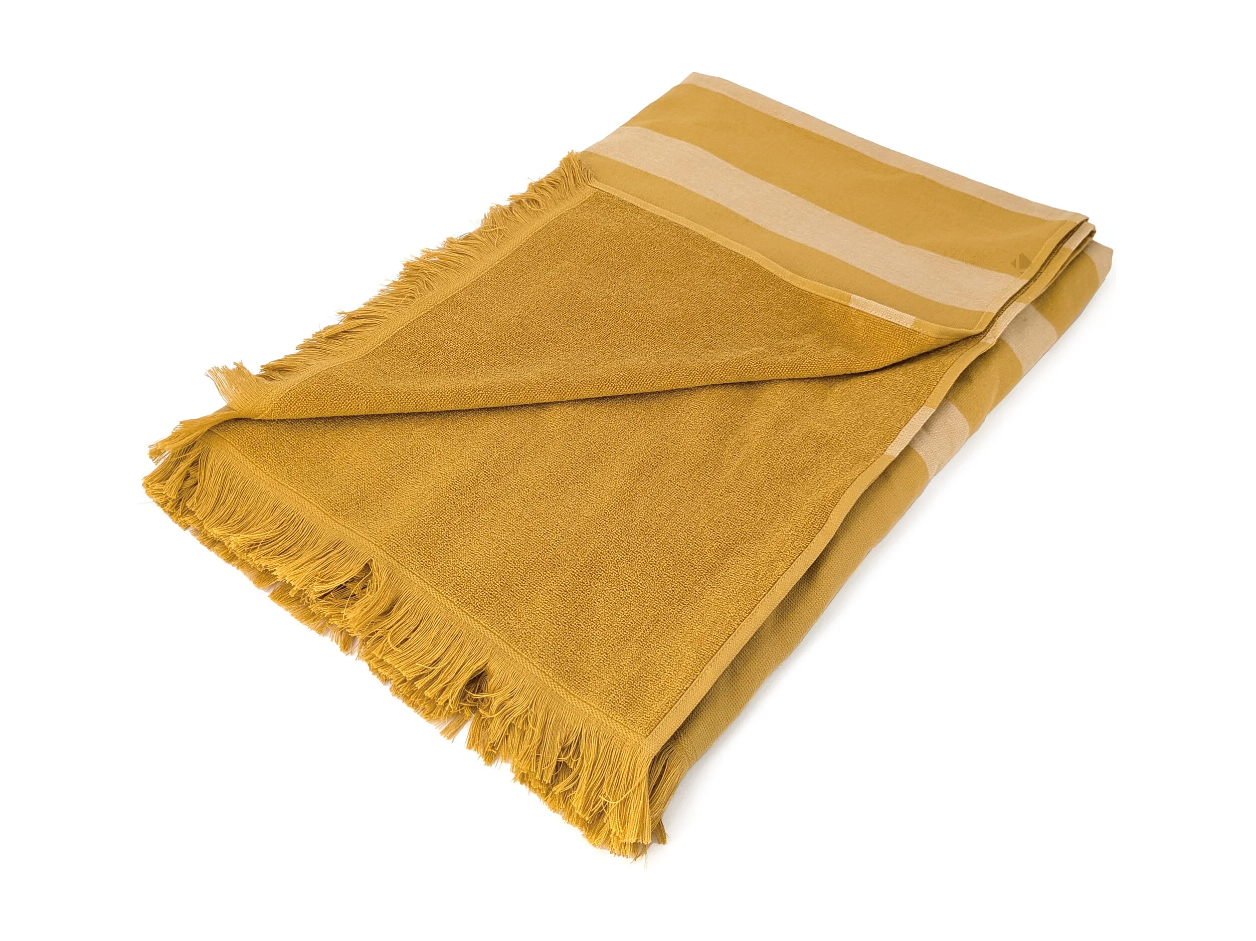 Drap de plage 100x180 cm pur coton collection CATANE rayures jaune moutarde