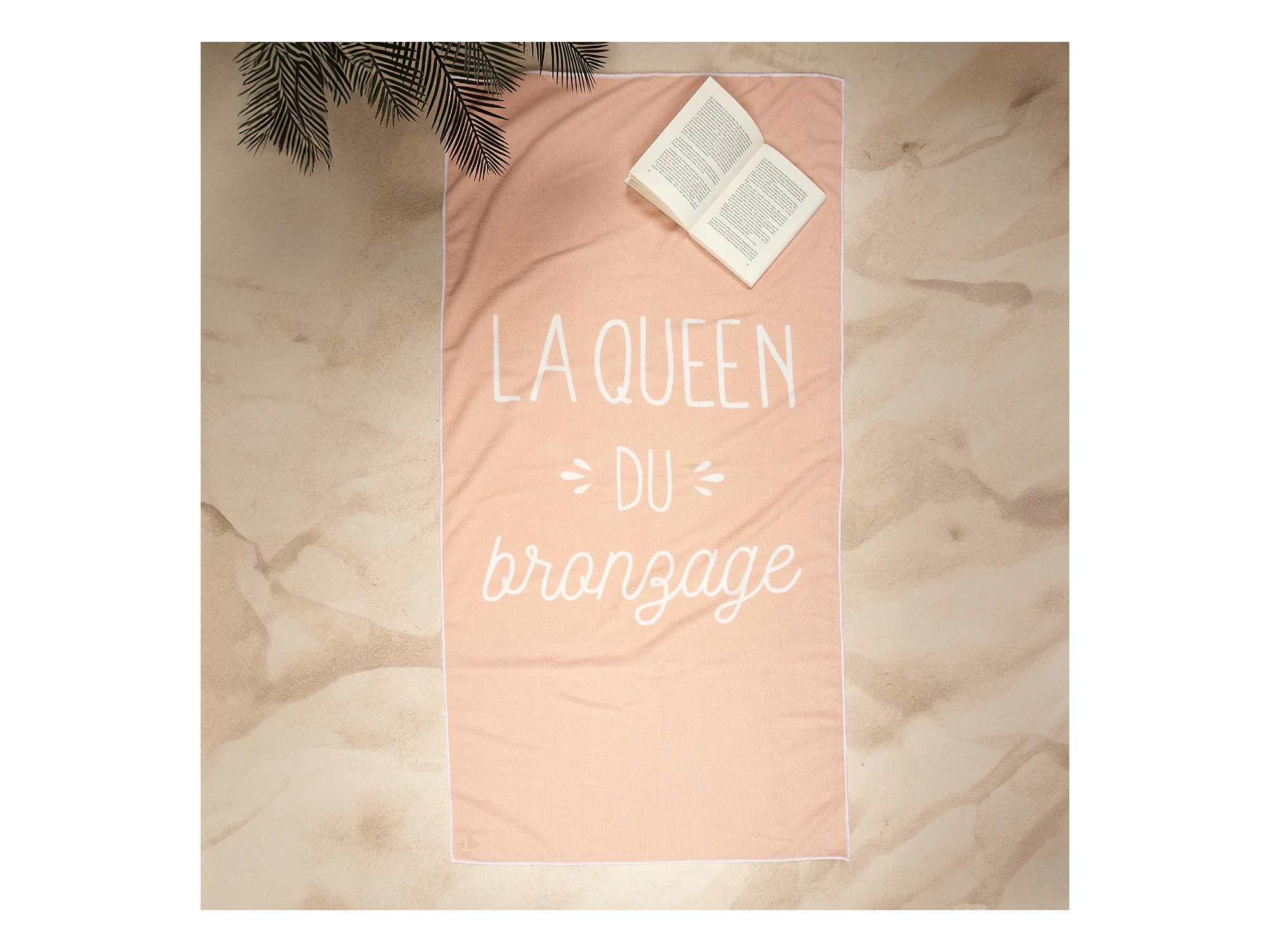 Drap de plage 70x140 cm en polyester collection KANEOHE modèle "La queen du bronzage" rose