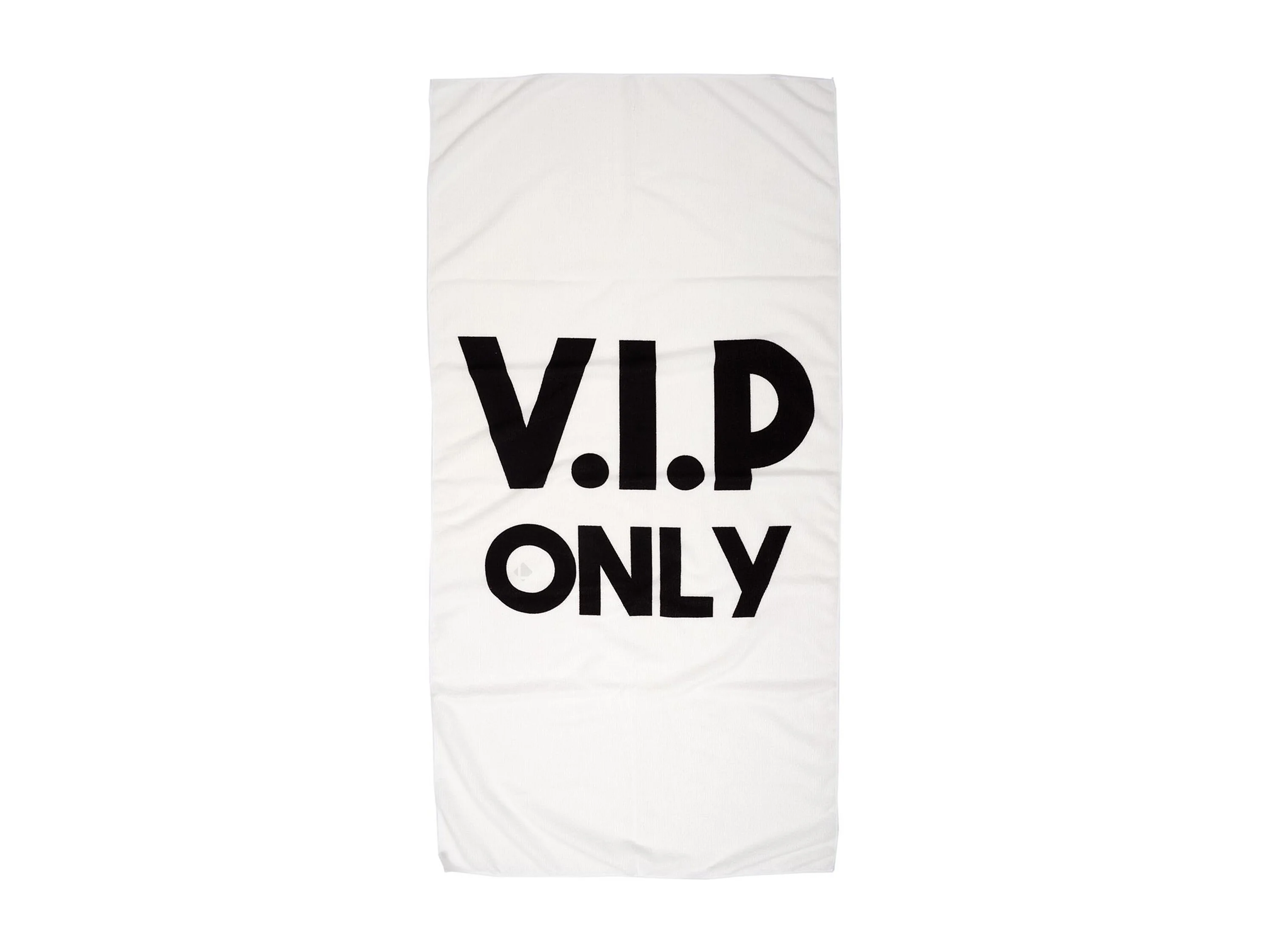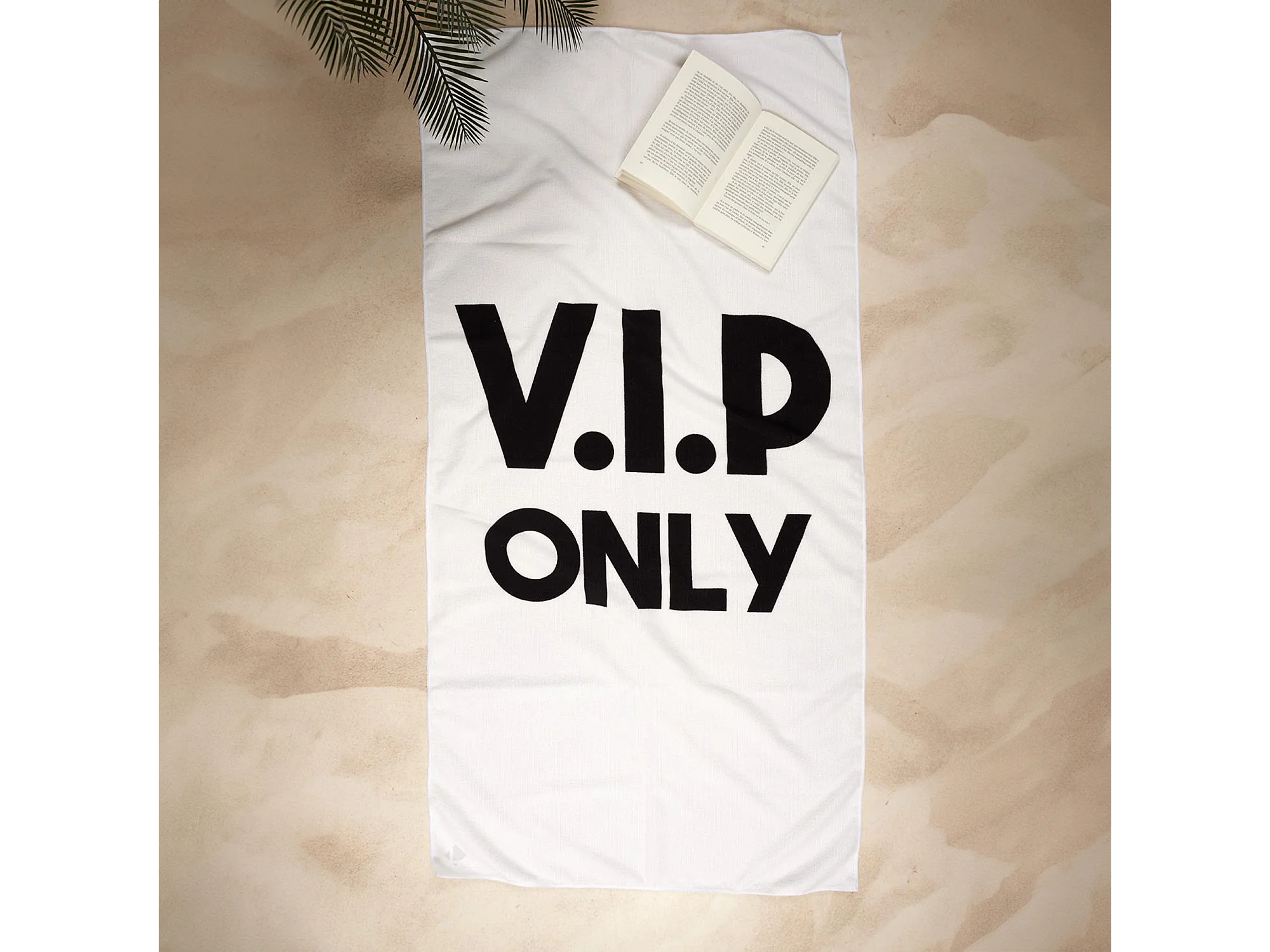 Drap de plage 70x140 cm en polyester KANEOHE modèle "VIP Only" blanc et noir