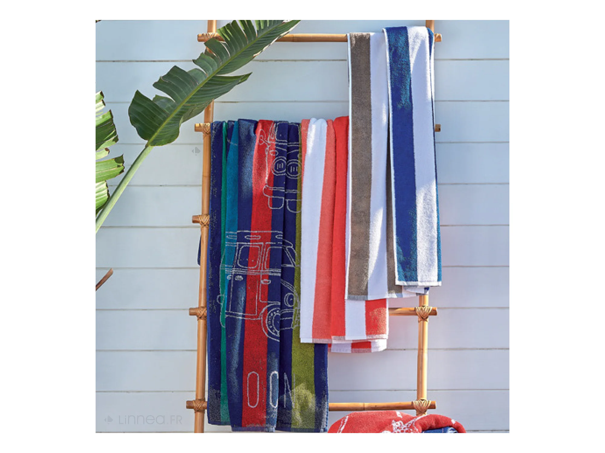 Drap de plage à rayures 75x150 cm coton collection ELBE bleu