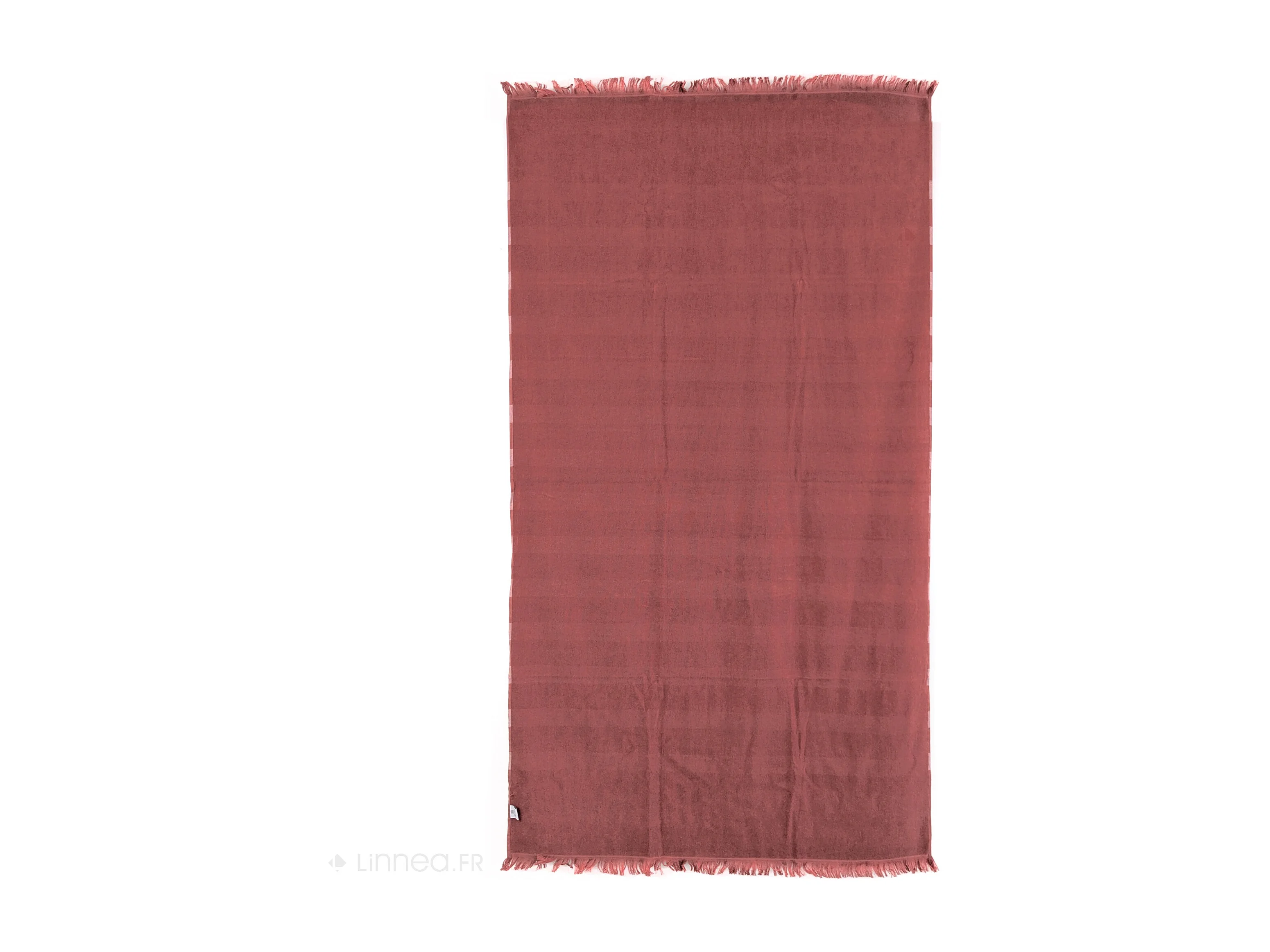 Drap de plage à franges 100x180 cm pur coton collection CATANE rayures rouge