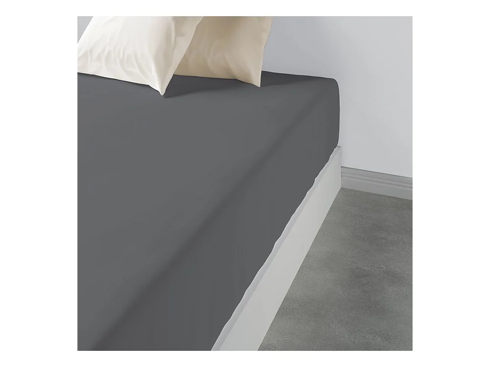Drap housse 140x190 +35 cm 100% Coton 57 fils Gris Foncé