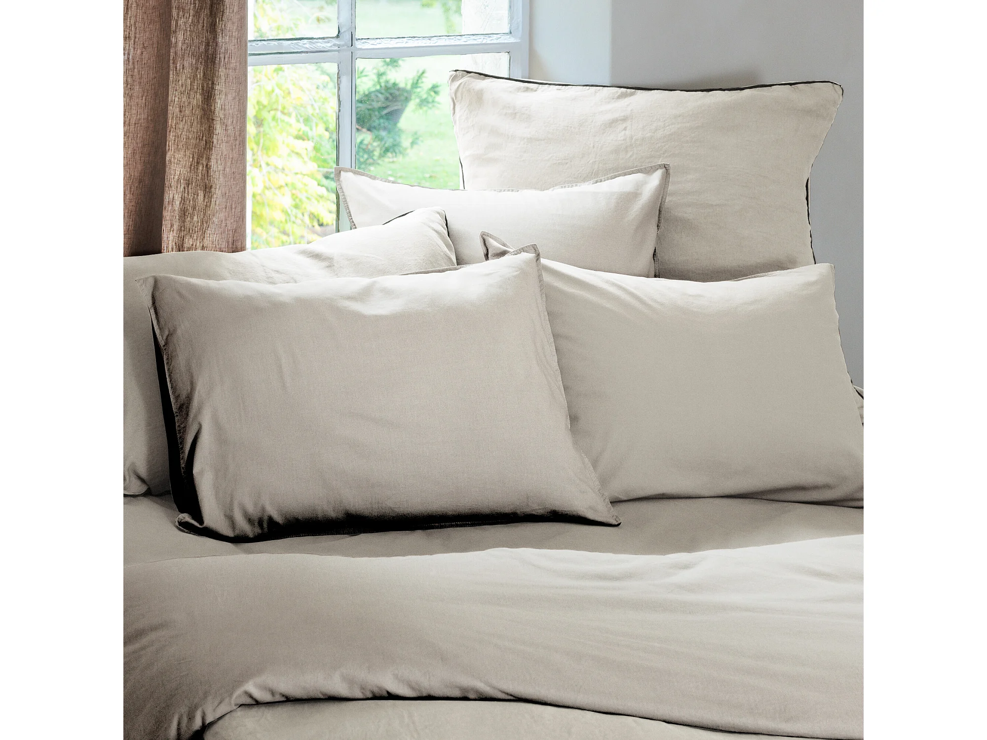Drap housse PALACE pur coton lavé 180x200 cm bonnet 35 cm uni blanc nacre