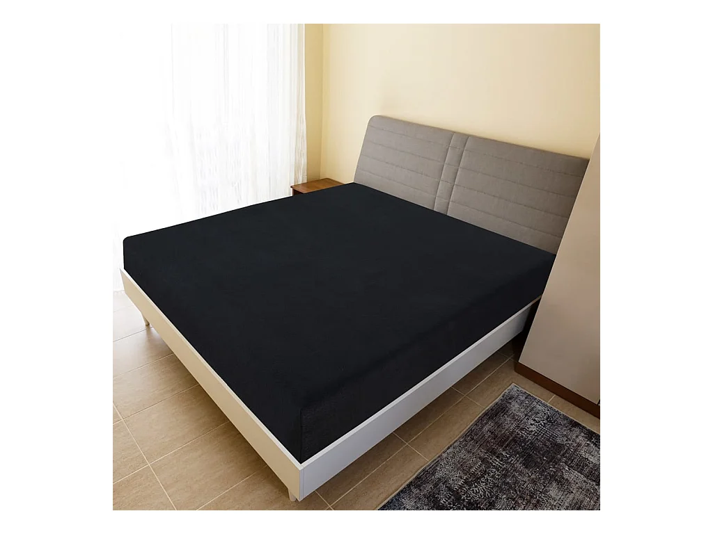 Drap-housse | Protege-matelas | Housse de matelas Jersey Noir 160x200 cm Coton