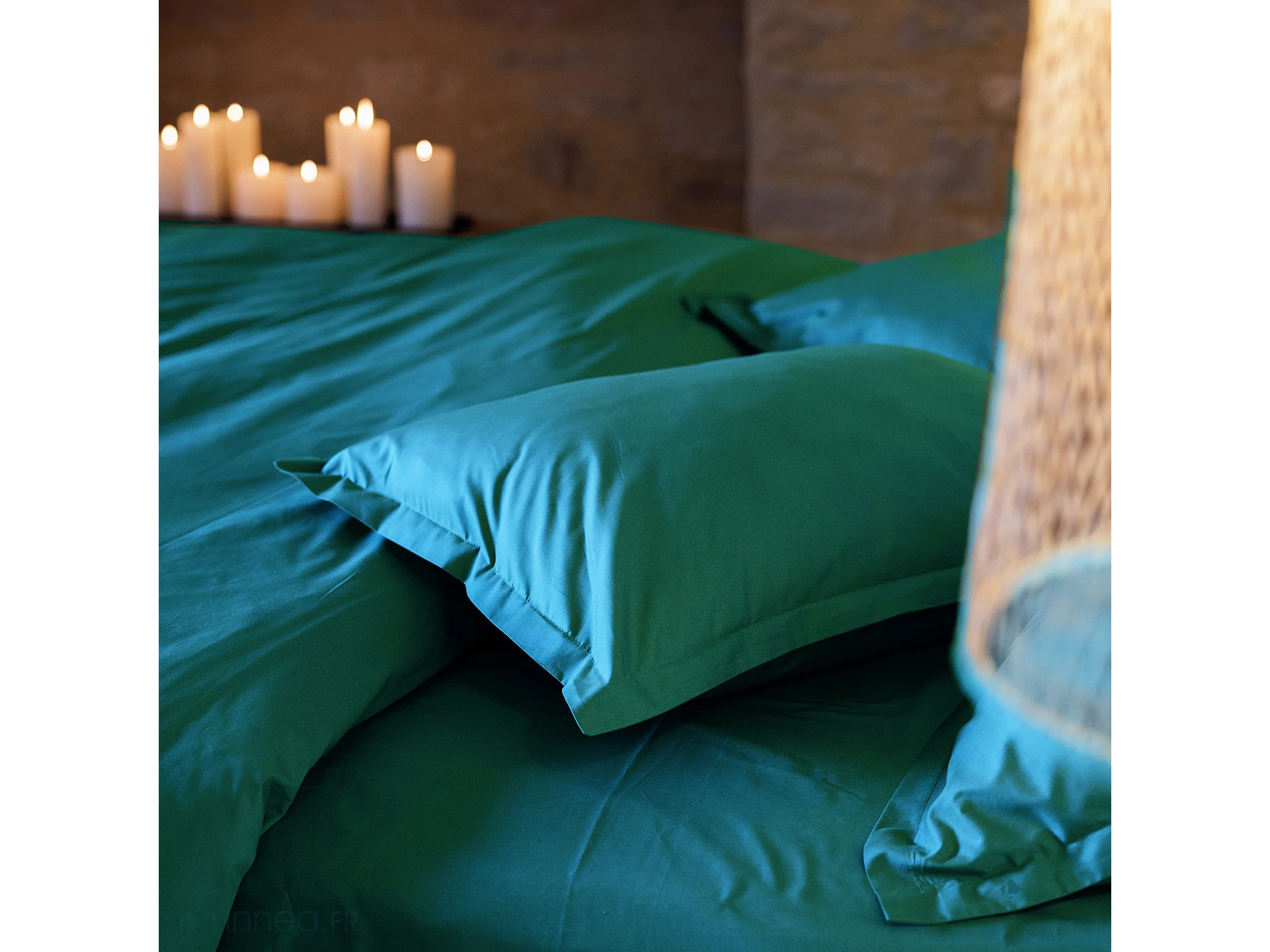 Drap housse uni 160x200 cm bonnet 35 cm percale de coton MANOIR vert Canard