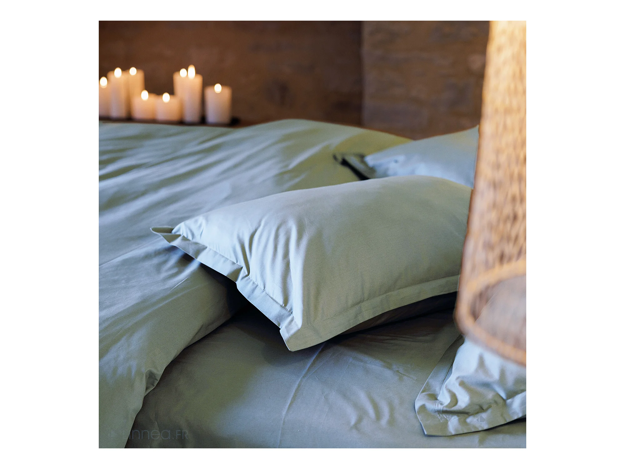 Drap housse uni 180x200 cm percale de coton MANOIR bleu Glacier bonnet 35
