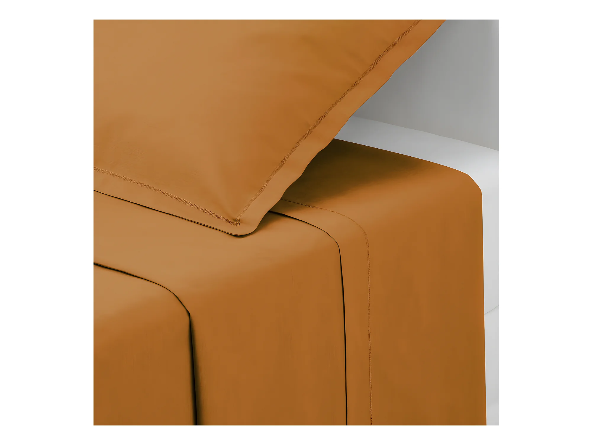 Drap plat 2 Personnes en Coton Jaune Cumin 240 x 290 cm