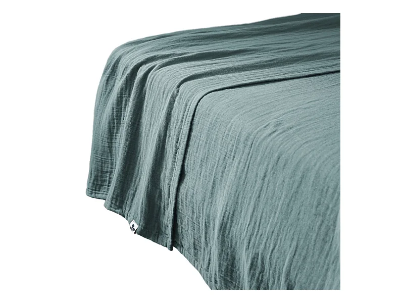 Drap plat 240 x 300 cm en double gaze de coton bleu canard - PEPA