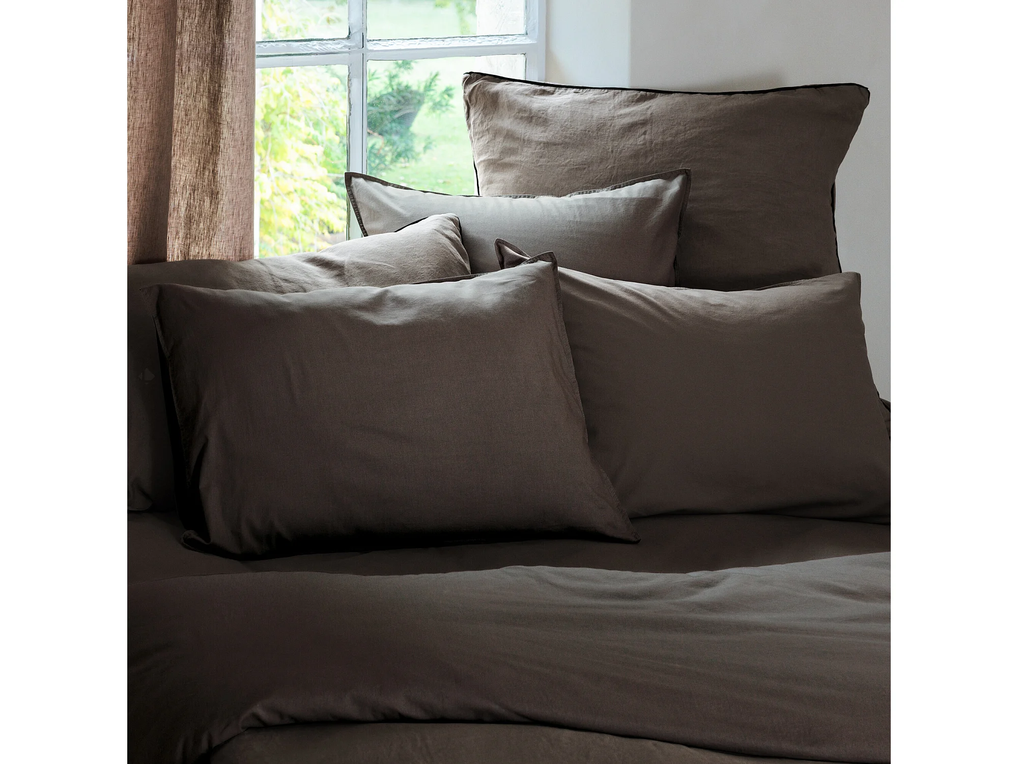 Drap plat 270x290 cm pur coton lavé PALACE marron café