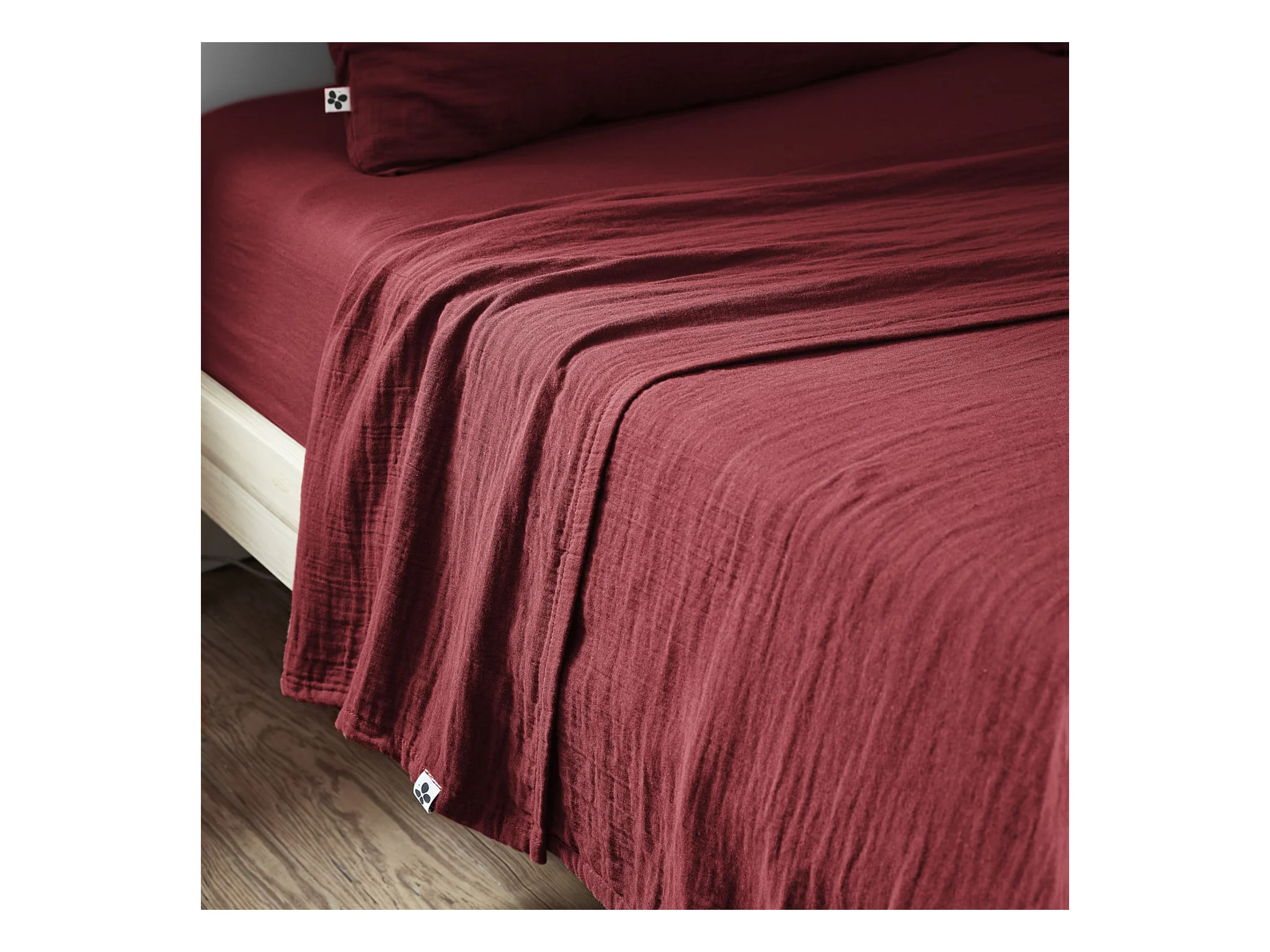 Drap plat 270x300 gaze de coton lie de vin Terre de Nuit