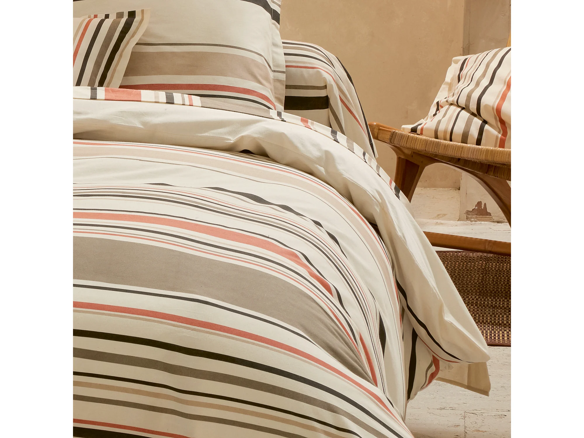 Drap plat 240x310 cm percale de coton ALBA beige/noir