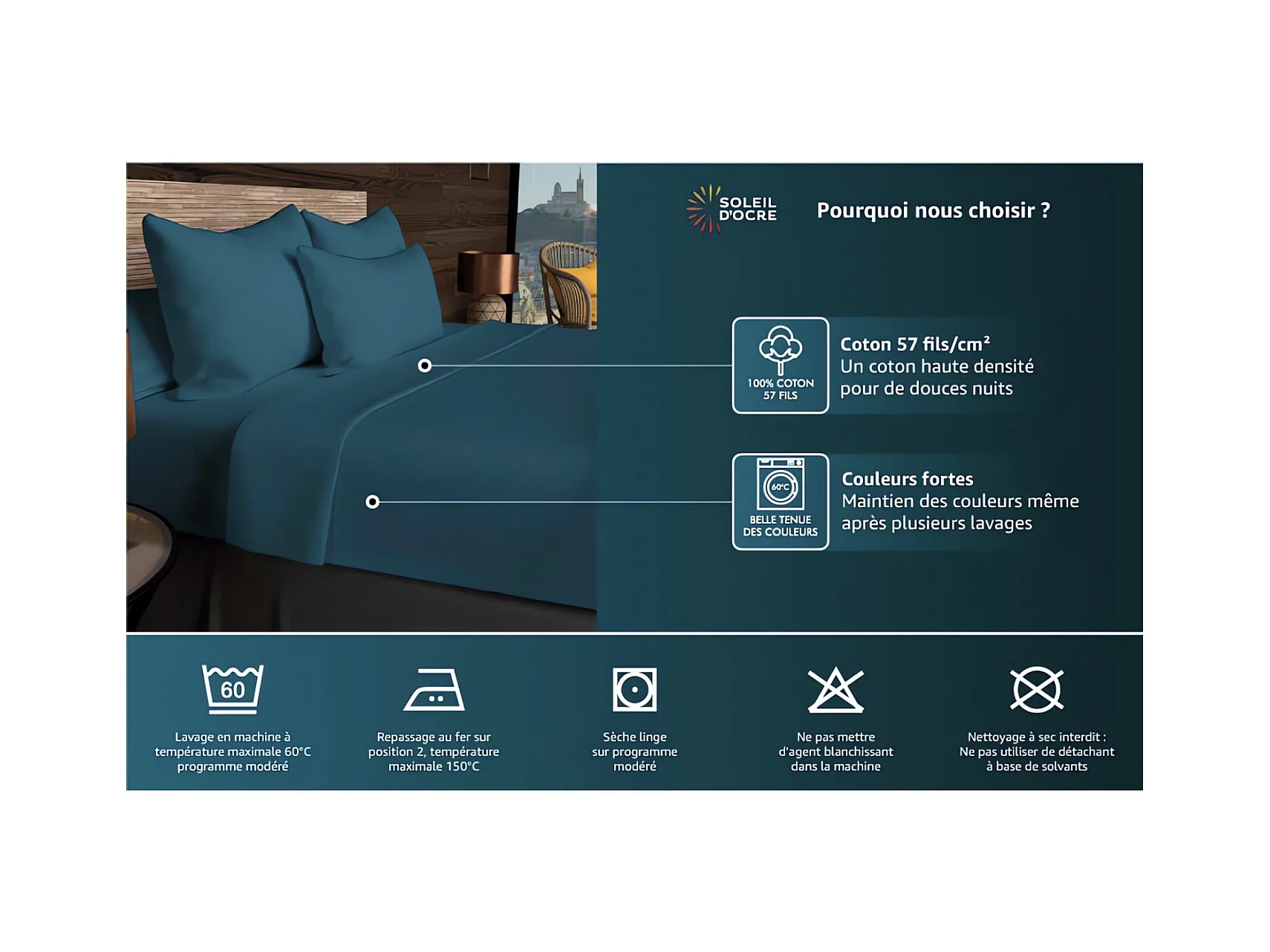 Drap plat en coton 57 fils 240x290 cm UNI brique, par Soleil d'ocre