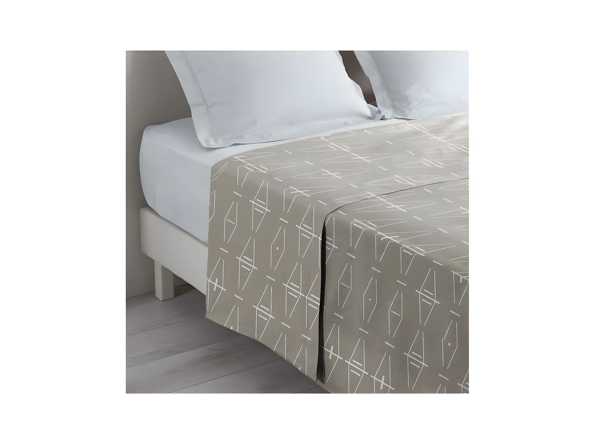 Drap plat 1 Personne en Coton Beige lin 180 x 290 cm