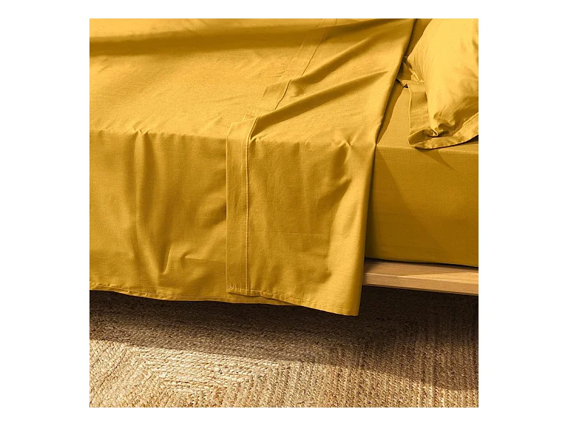 Drap plat en coton 57 fils 240x290 cm UNI moutarde, par Soleil d'ocre
