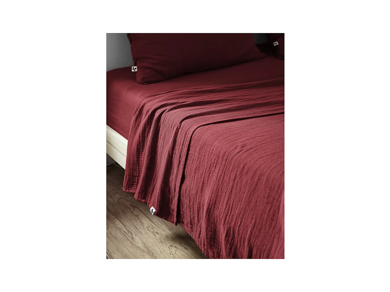 Drap housse bonnet 30 cm 100% gaze de coton unie bordeaux 200x200 cm