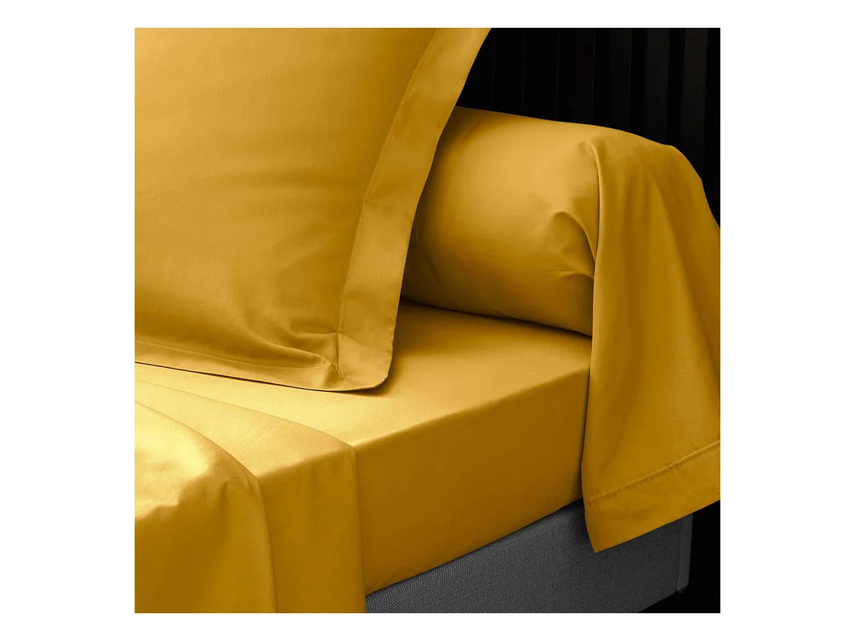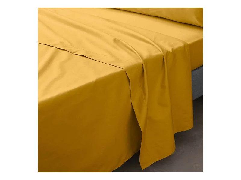 Drap plat en coton 57 fils 180x290 cm UNI moutarde, par Soleil d'ocre
