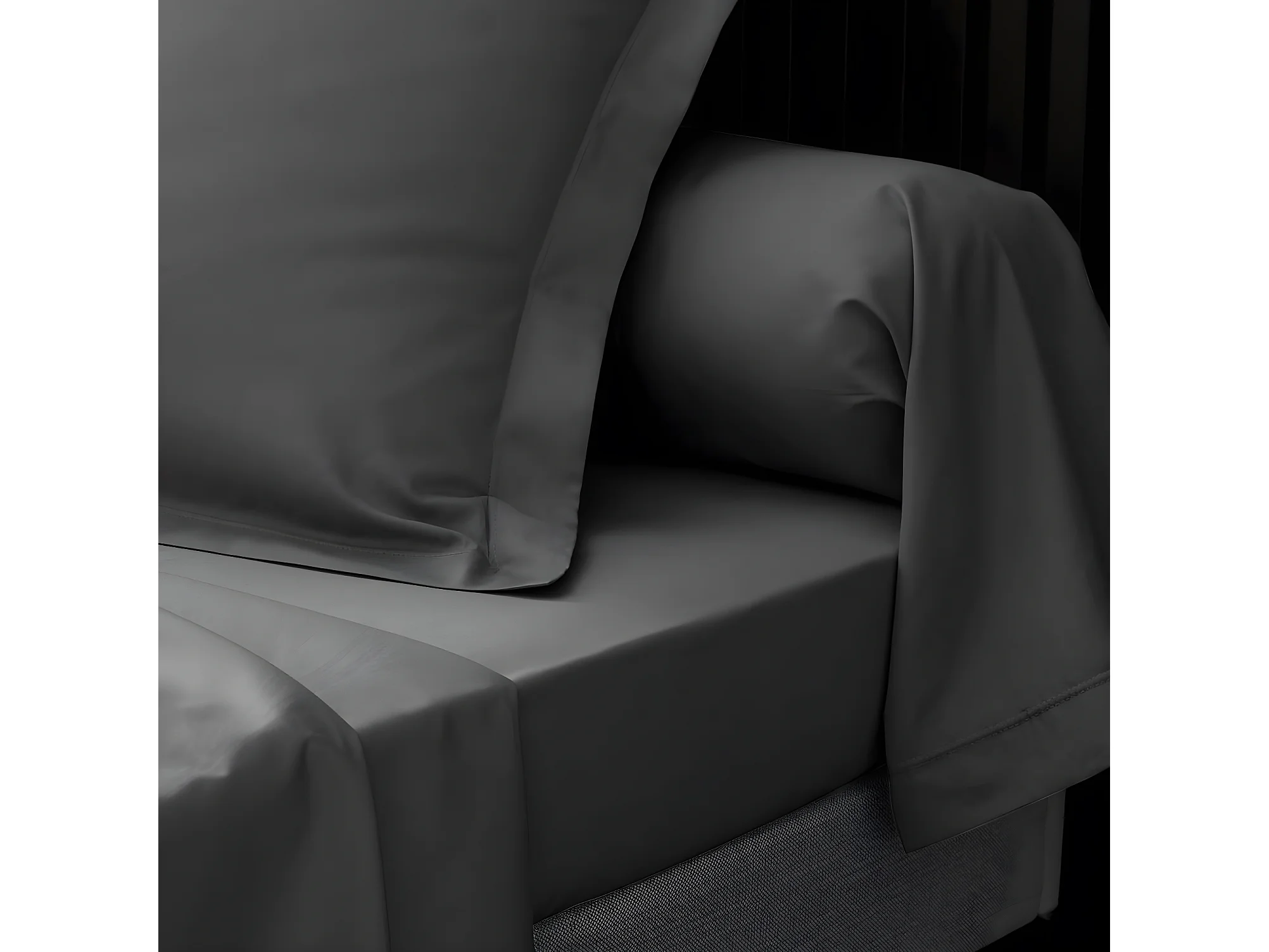 Drap housse uni en coton 57 fils anthracite 160x200cm