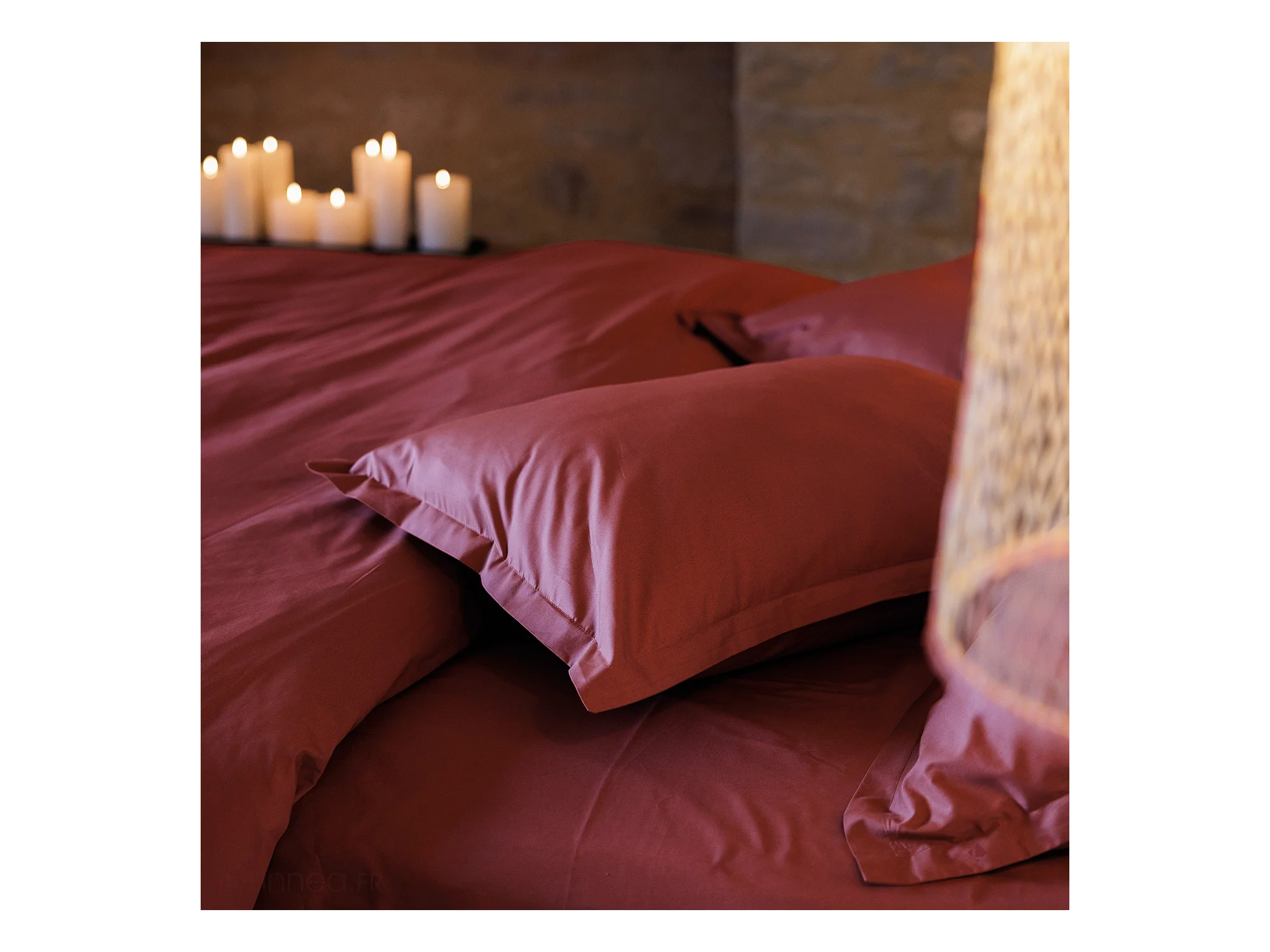 Drap housse en coton 57 fils 90x190 cm UNI brique, par Soleil d'ocre