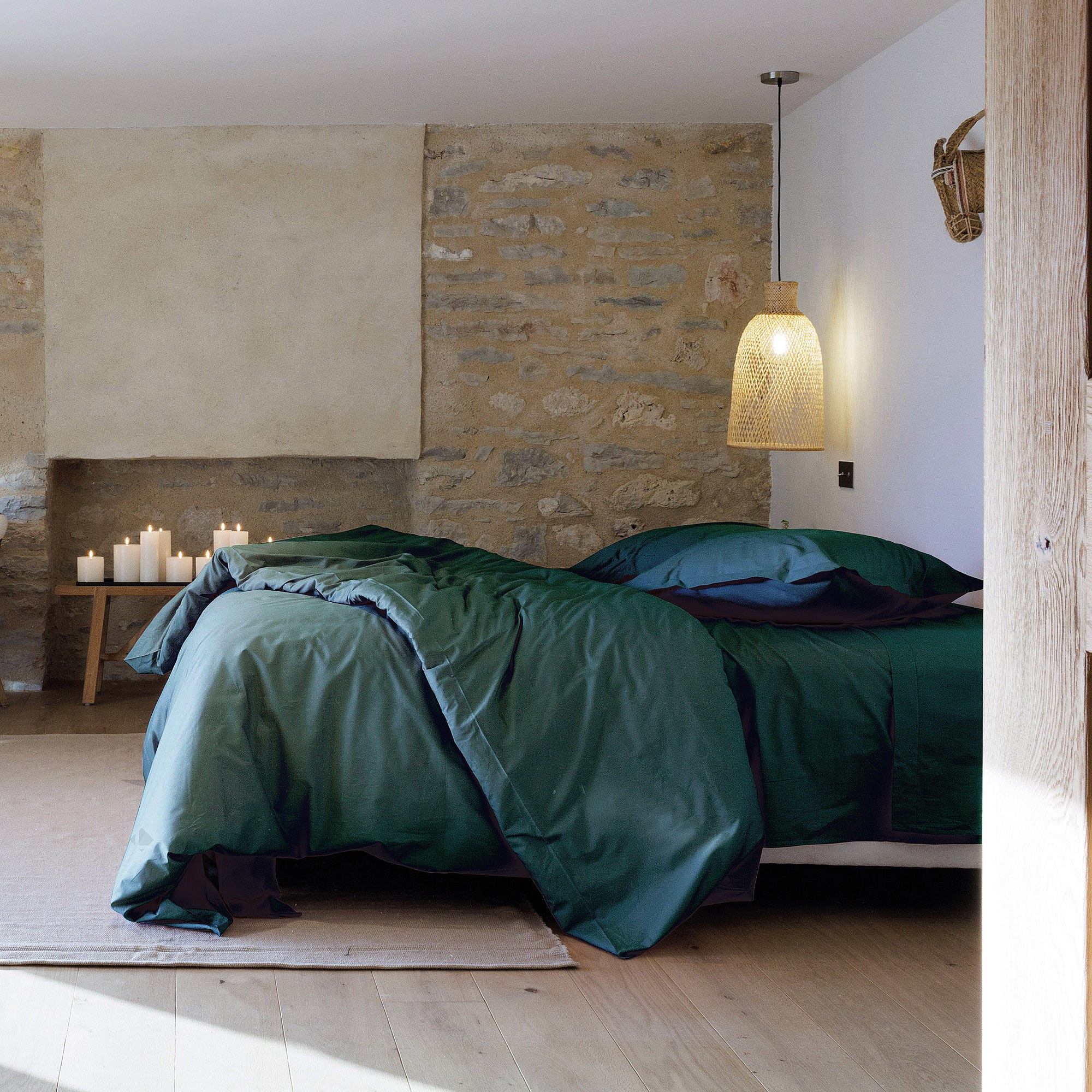 Drap plat 270x300 cm percale de coton MANOIR vert Canard