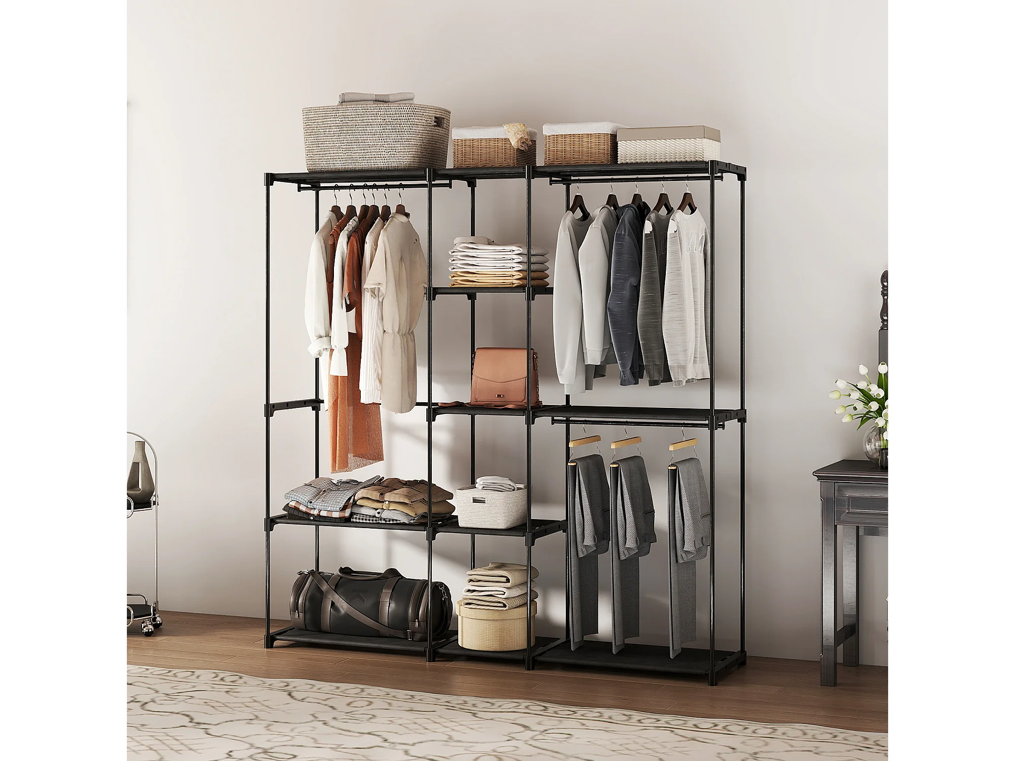 Armoire penderie multi-rangement - 8 étagères, 2 barres - dim. 125L x 43l x 162,5H cm - acier noir non tissé noir