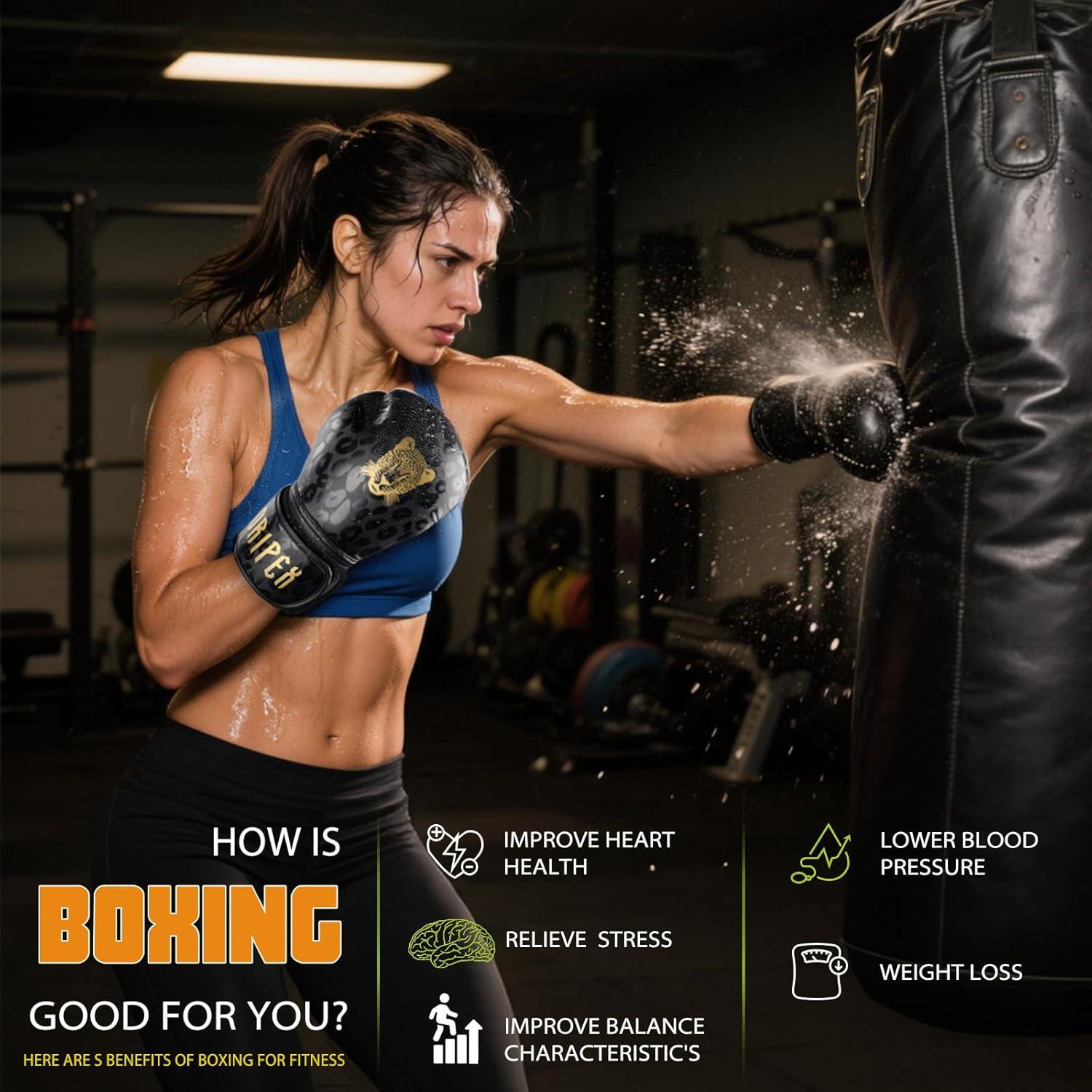 Dripex Gants de Boxe 12 oz Gants dEntranement de Boxe PU Cuir Gants Sac de Frappe Homme Femme Boxing Gloves Professionnels pour Ar