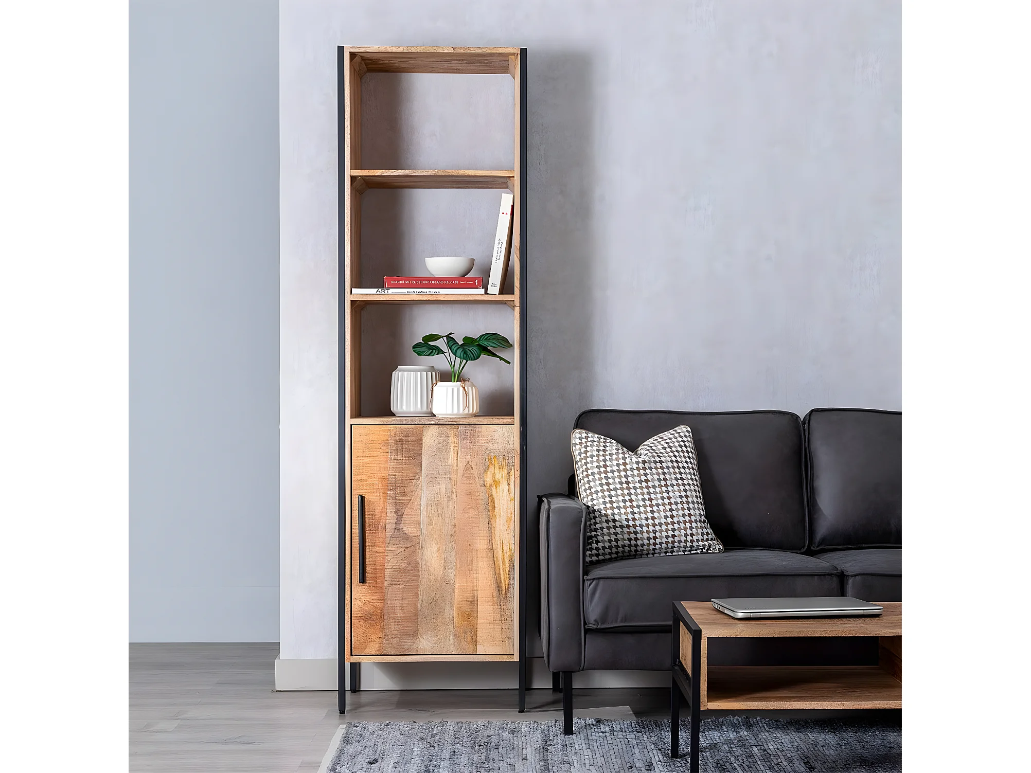 DROMY - Meuble Etagère Manguier et Métal Noir
