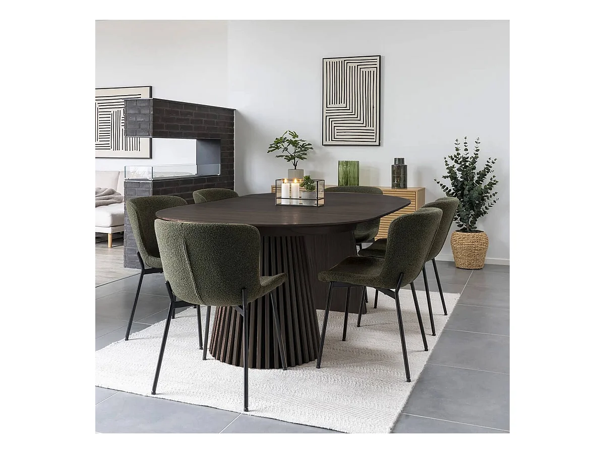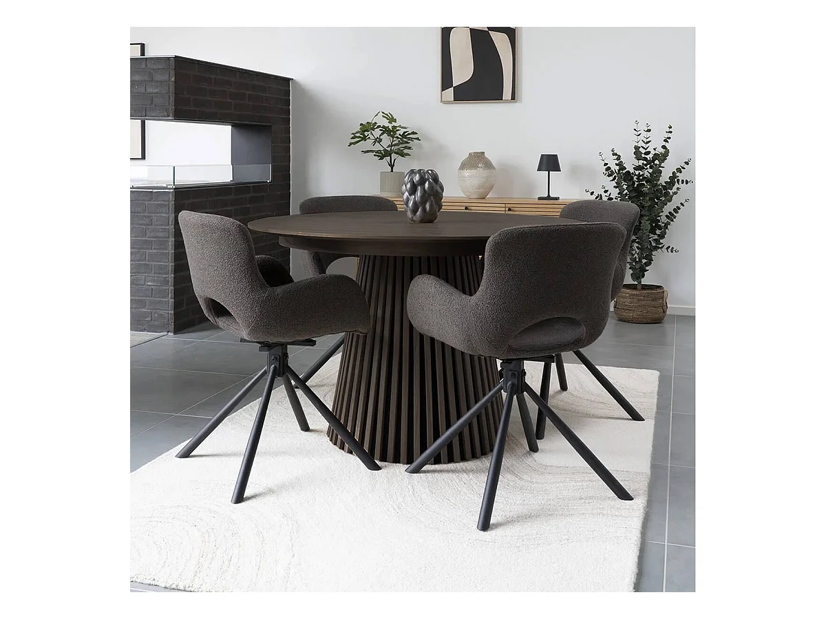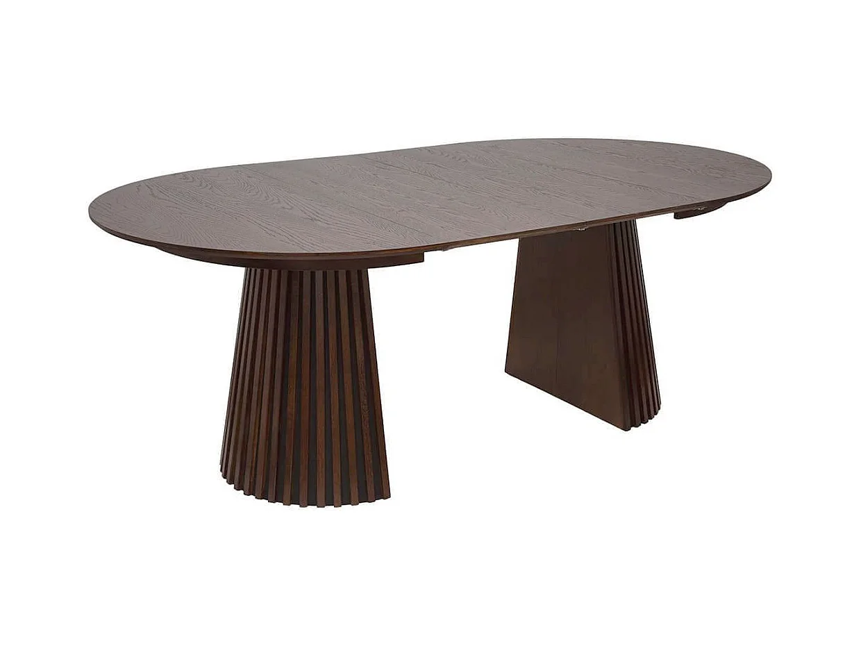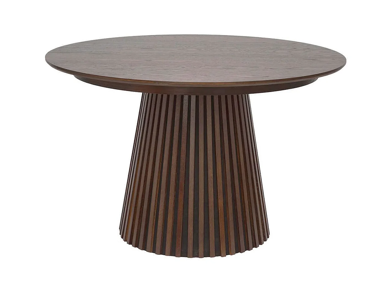 DUBLIN - Table Extensible Ronde Pied Central Relief MDF Placage Chêne fumé