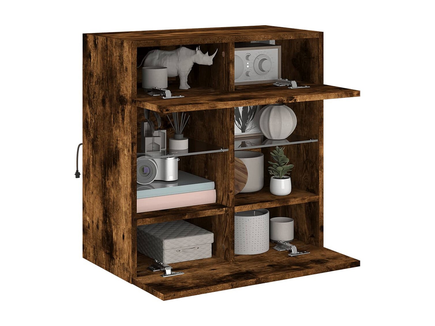 DuBois Meuble TV mural avec lumières LED chêne fumé 58,5x30x60,5 cm