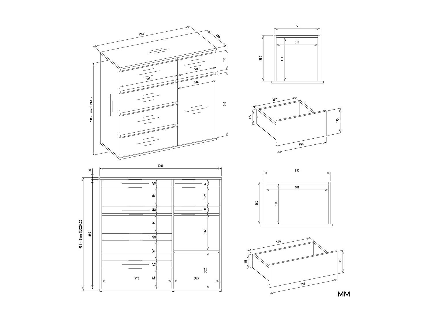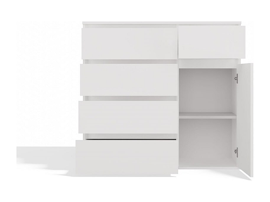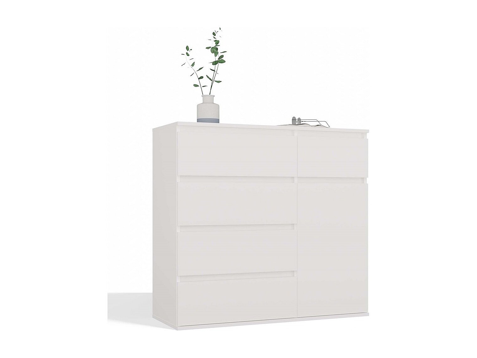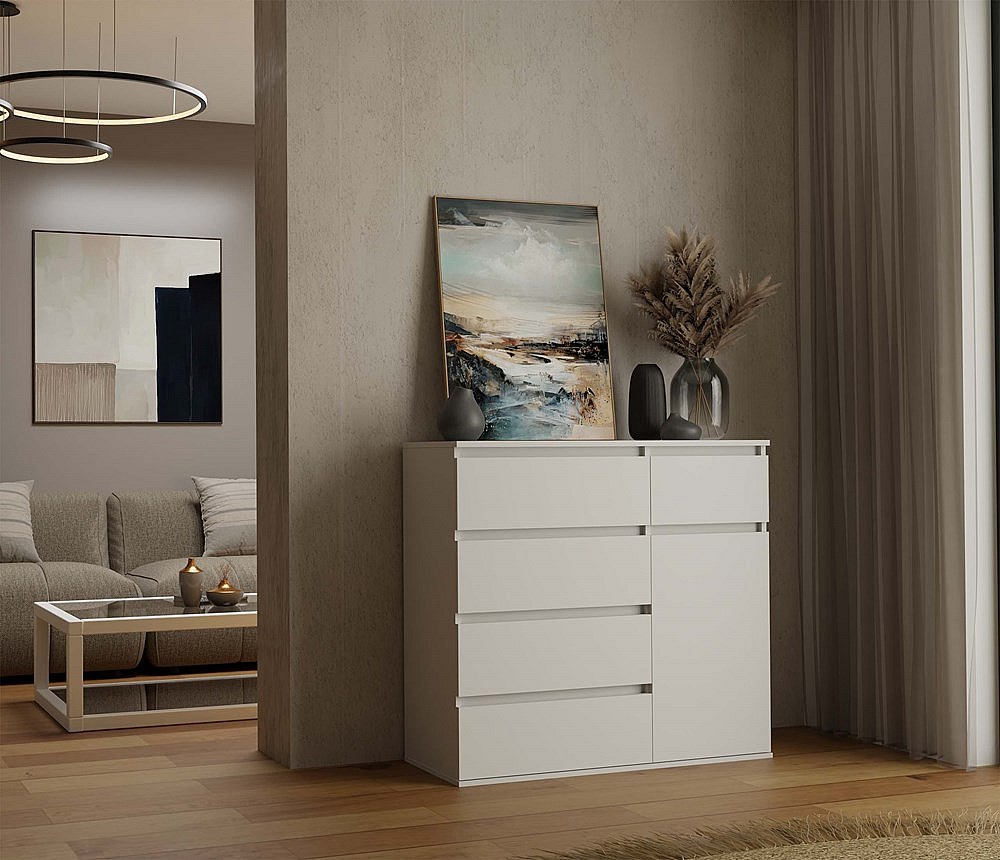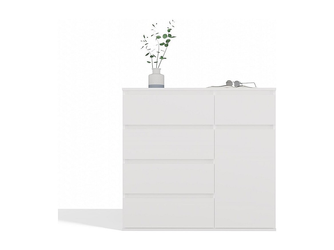 DUNE - Commode 1 porte, 5 tiroirs pour salon, chambre ou enfant blanc mat