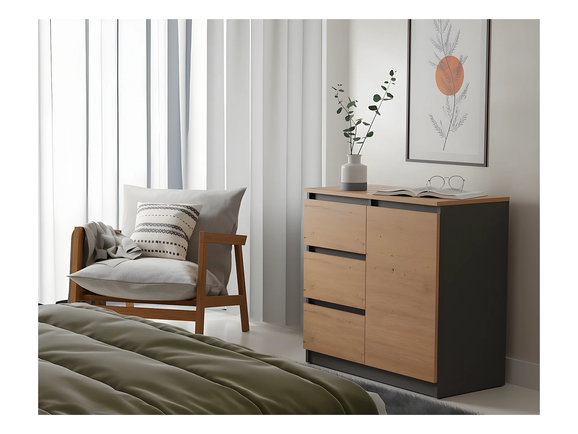 DUNJA - Buffet 1 porte 3 tiroirs - Dimensions 80x40x75 cm - Rangement séjour - Style moderne