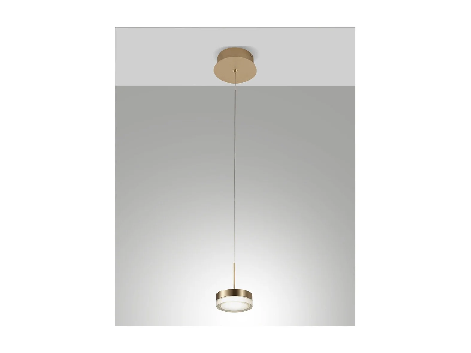 Dunk - Suspension simple en laiton satiné de Fabas Luce - LED 8W dimmable, design moderne