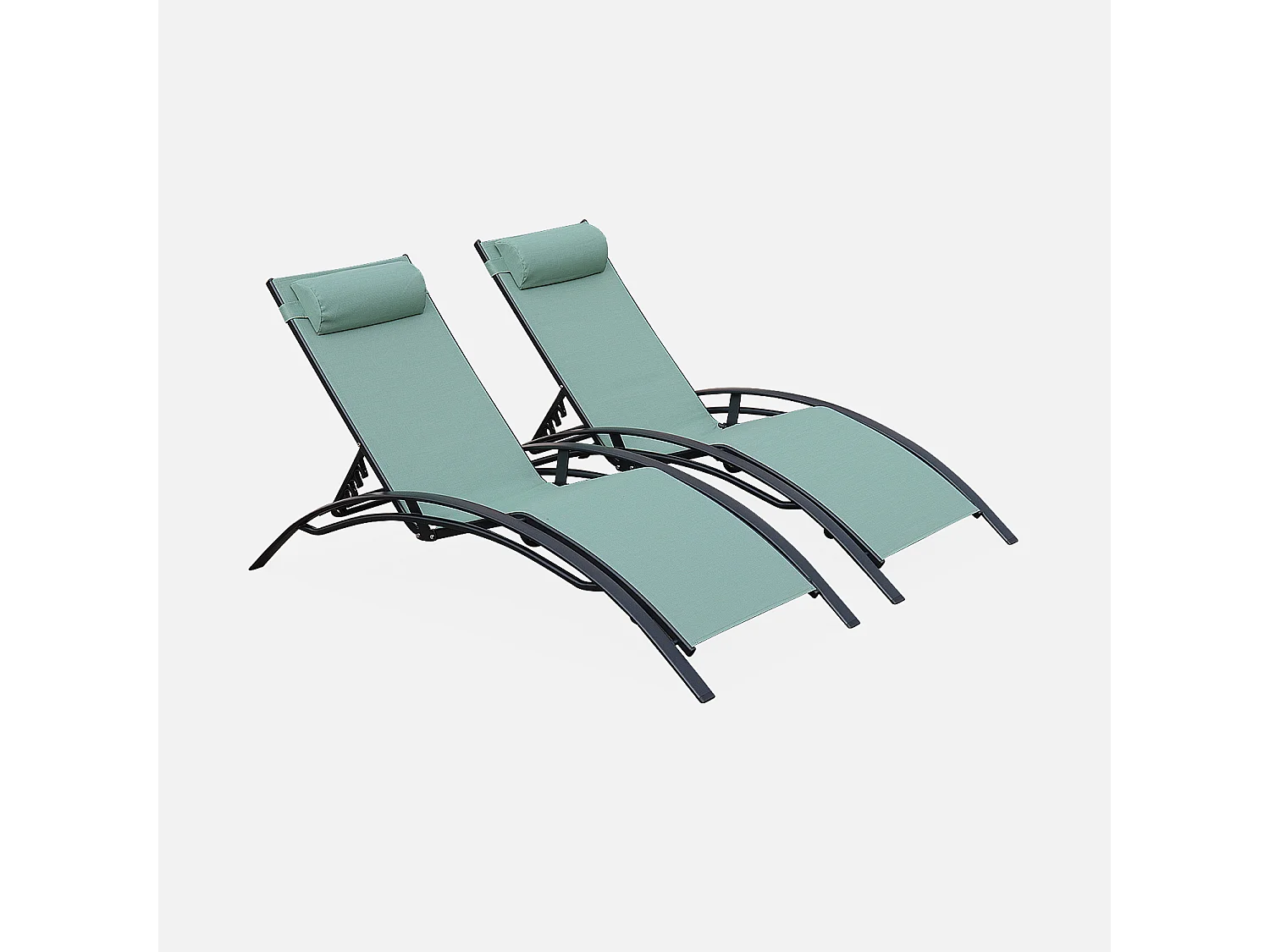 Duo de bains de soleil aluminium - Louisa Vert de gris - Transats aluminium et textilène