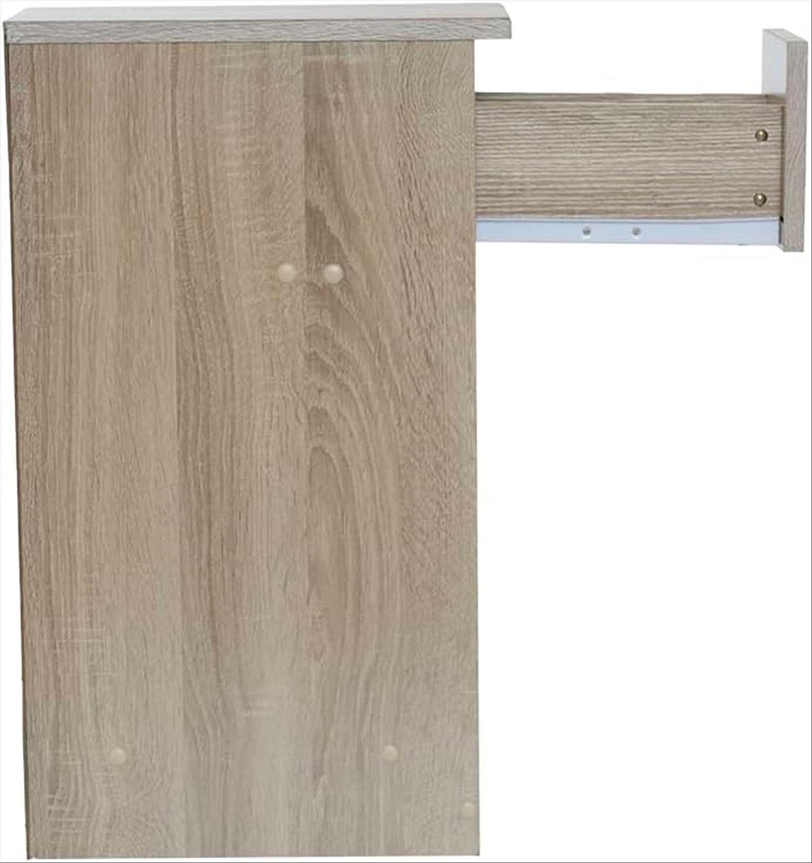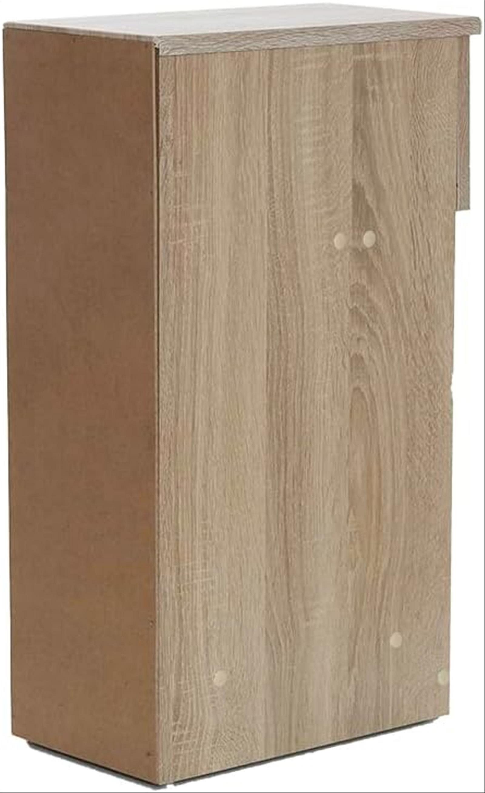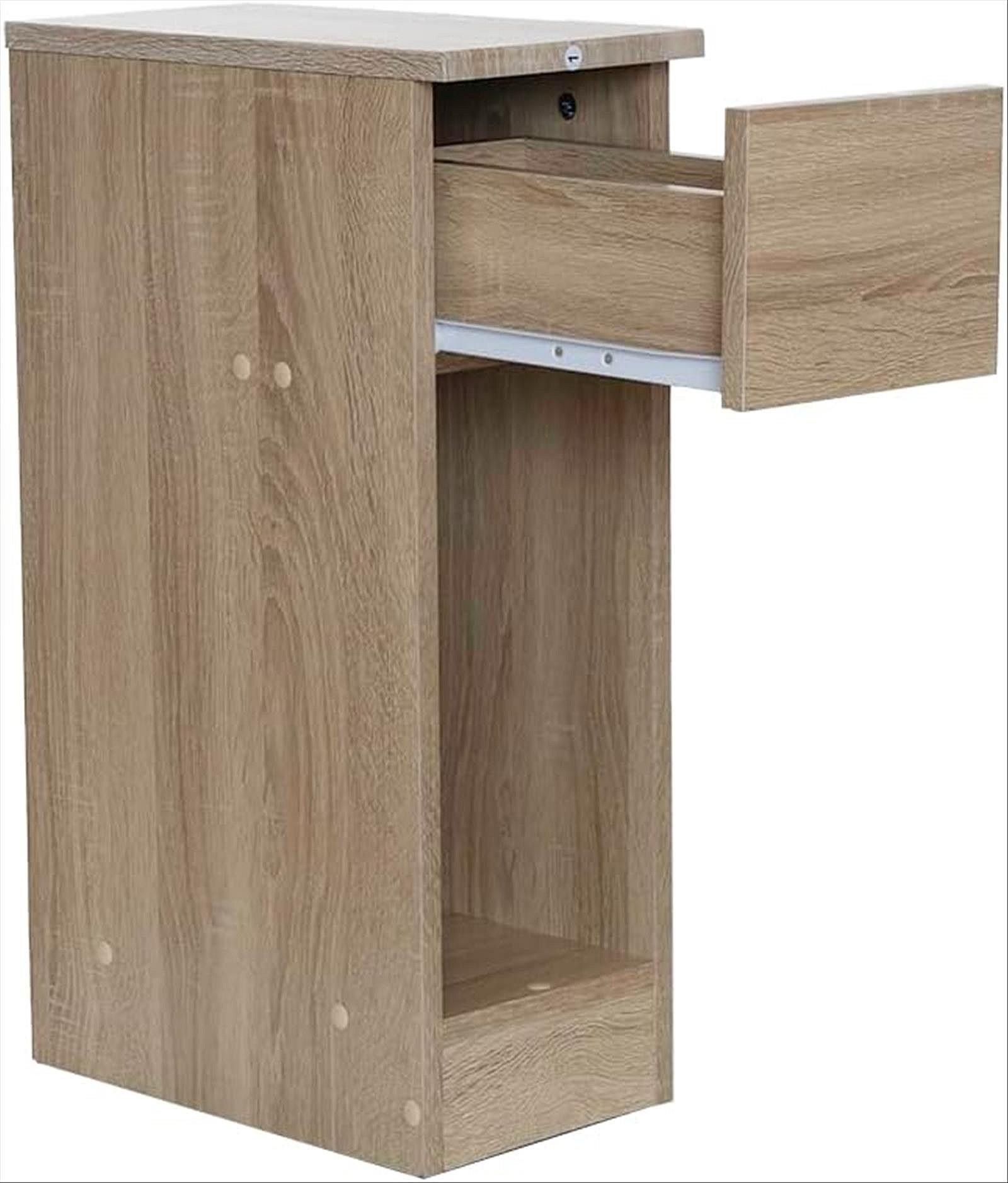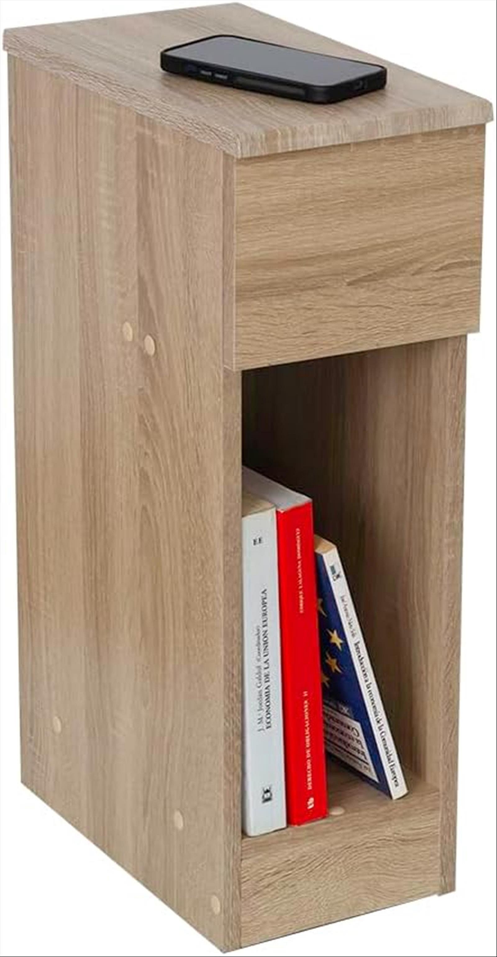 Table de chevet fine pour chambre à coucher, style naturel, couleur chêne clair, 1 tiroir et 1 niche, dimensions 60 x 35 x 24 cm