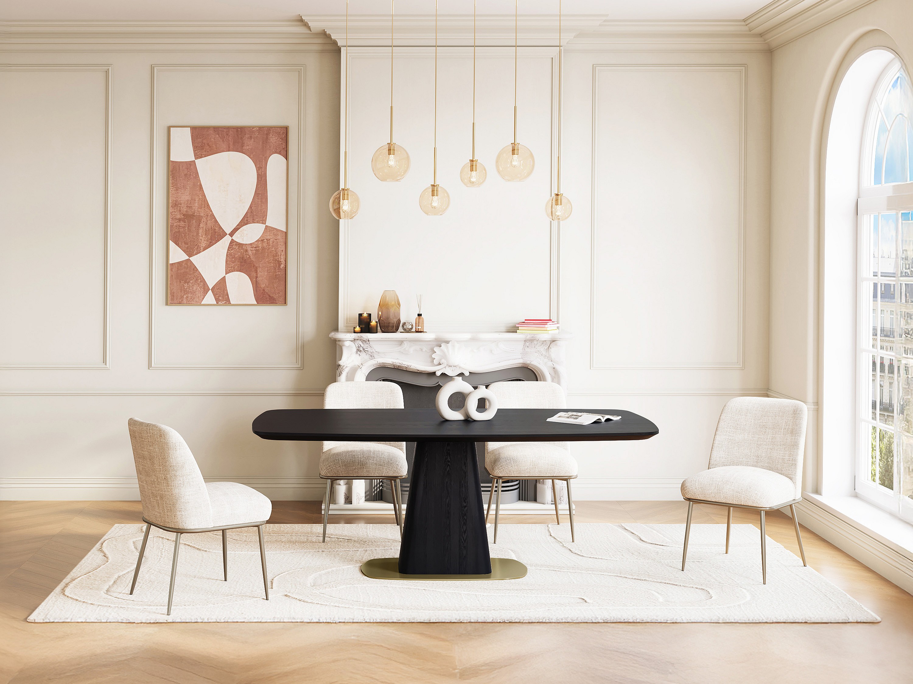Table à manger 8 personnes placage frêne et métal - Noir et doré - DYLORA