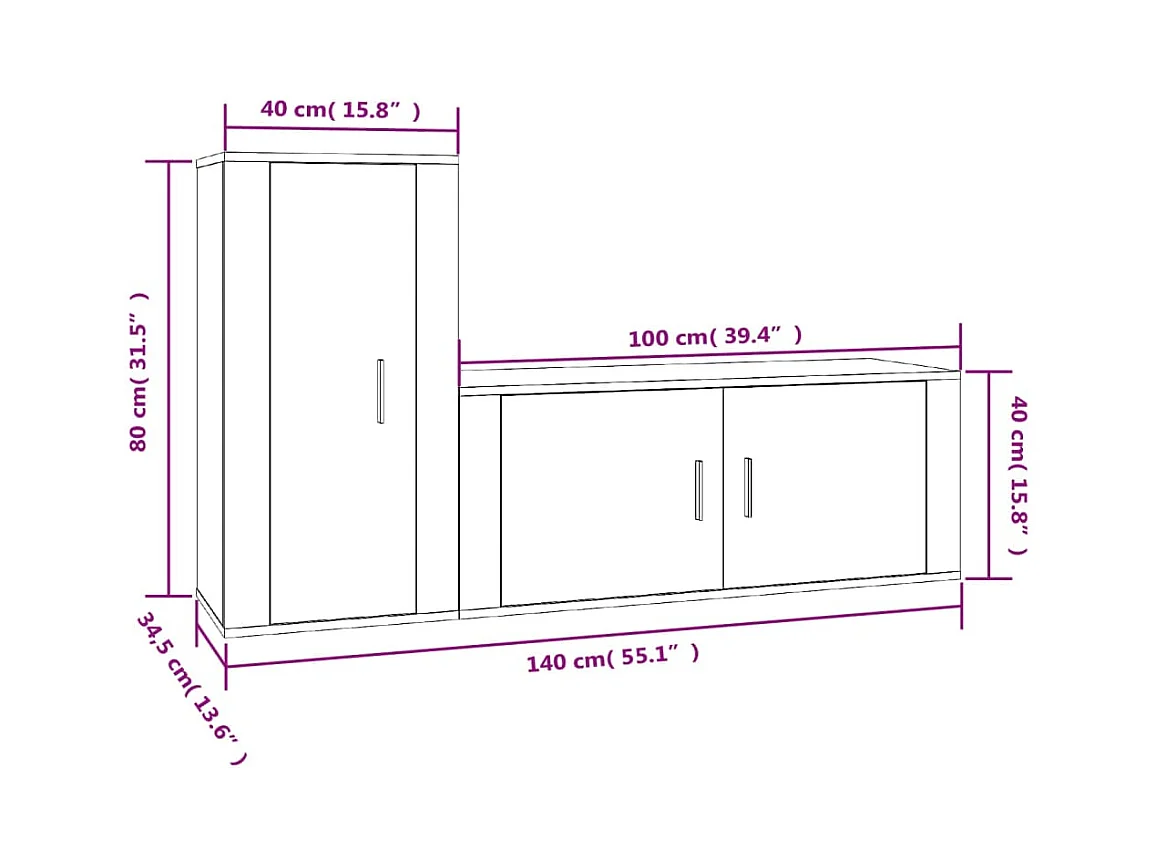 Dyrgar Ensemble de meubles TV 2 pcs Sonoma gris Bois d'ingénierie