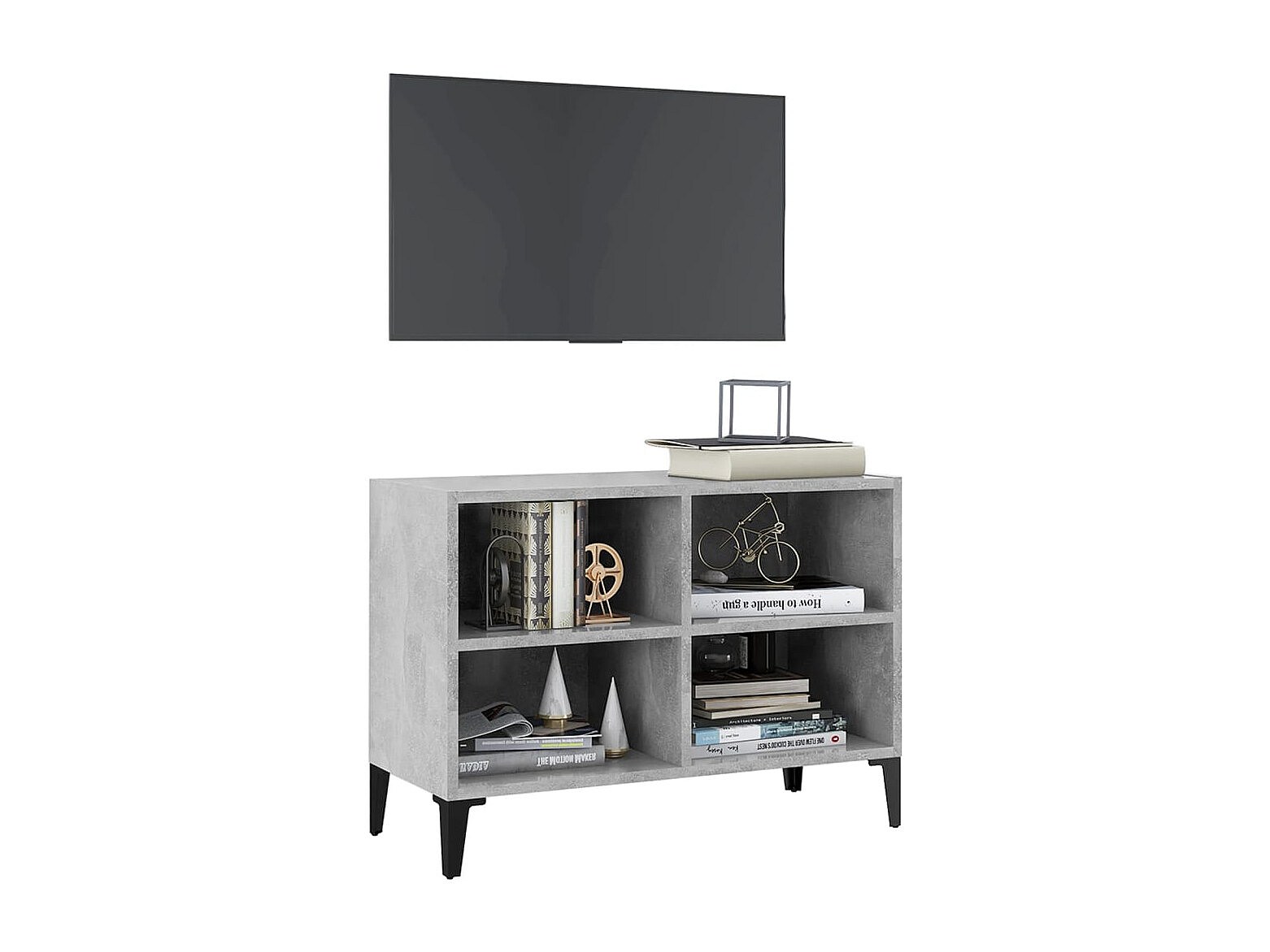 Eadestown Meuble TV avec pieds en métal Gris béton 69,5x30x50 cm