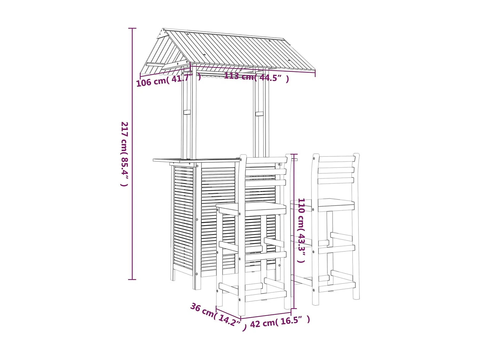 Earl John Ensemble de bar de jardin 3 pcs Bois d'acacia solide