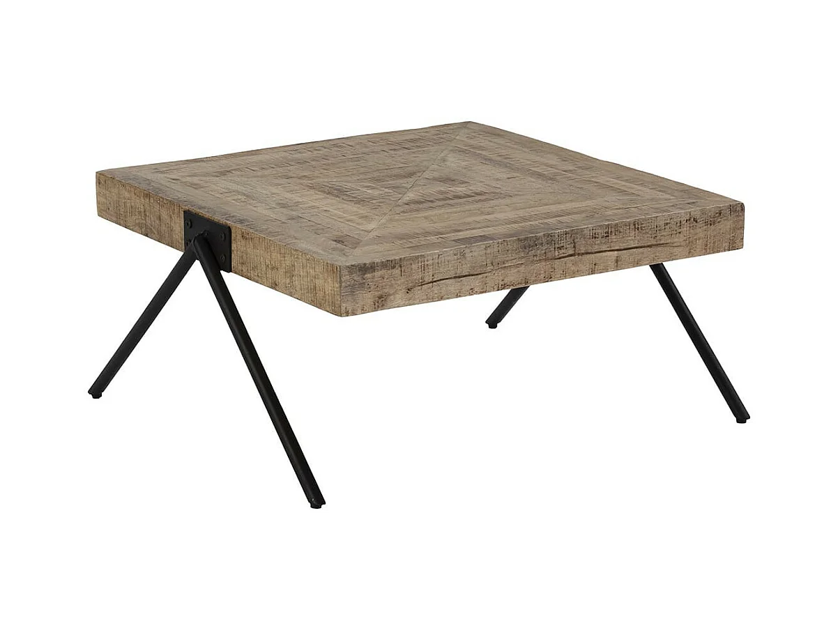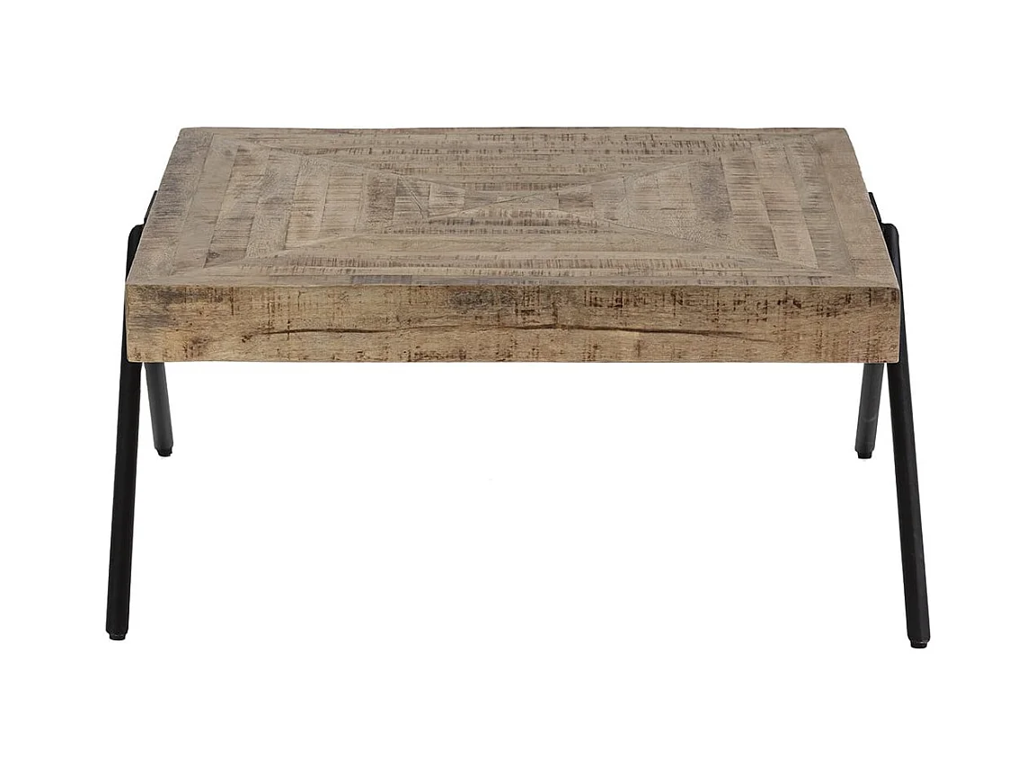 ECAMA - Table Basse Rectangulaire en Bois de Manguier et Métal Noir