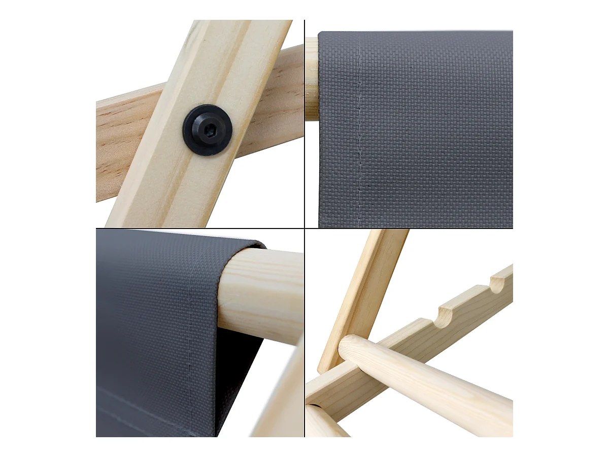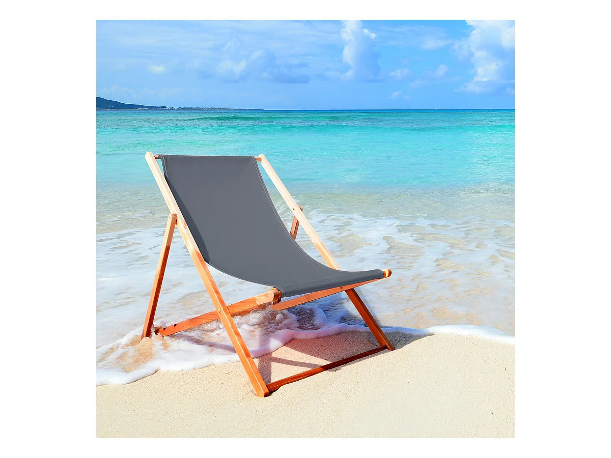 Chaise longue de jardin pliable anthracite en bois chilienne 3 positions de couchage jusqu'à 120 kg pour usage intérieur et extérieur balcon terrasse