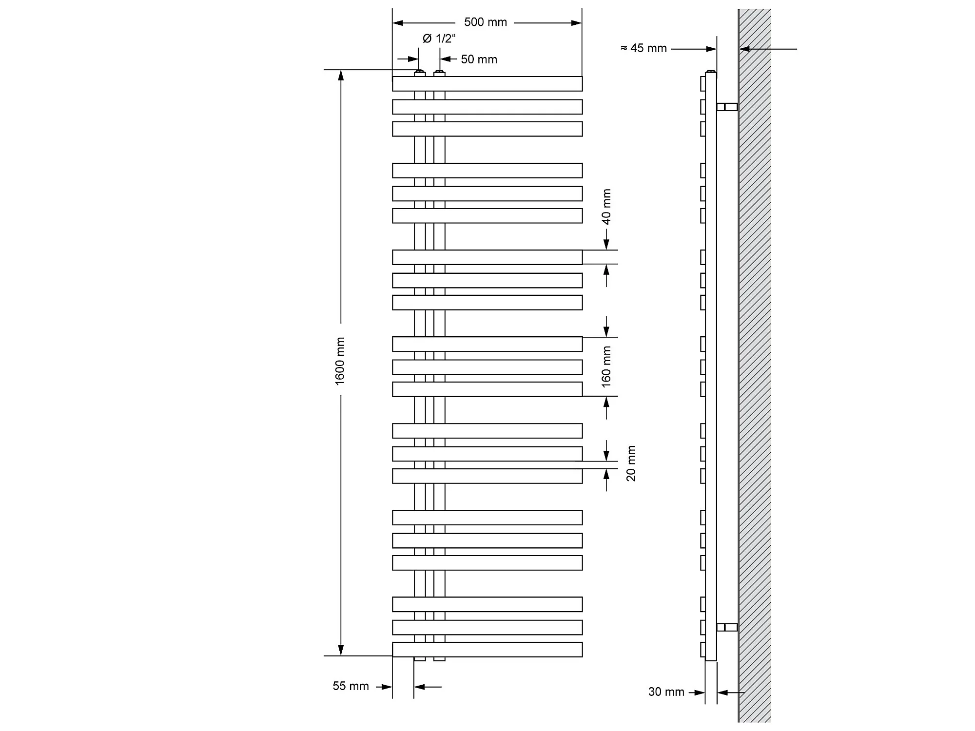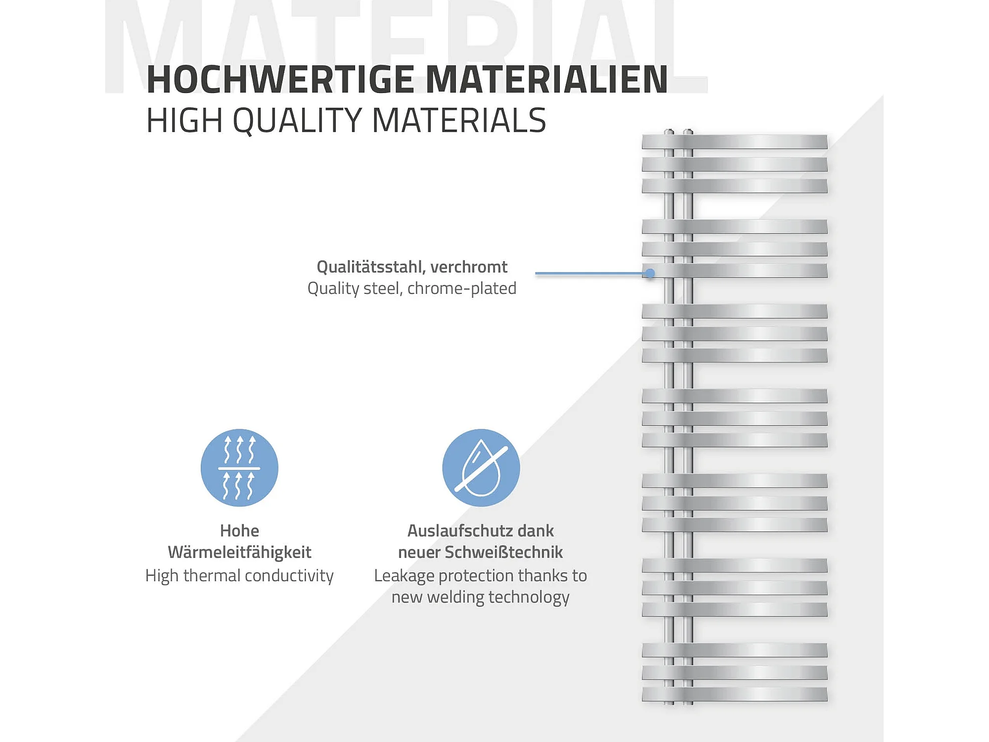 ECD Germany Iron EM Design Radiateur Sèche-Serviettes - 500 x 1600 mm - Chrome - Radiateur Salle de Bain Sèche Serviette Chauffant
