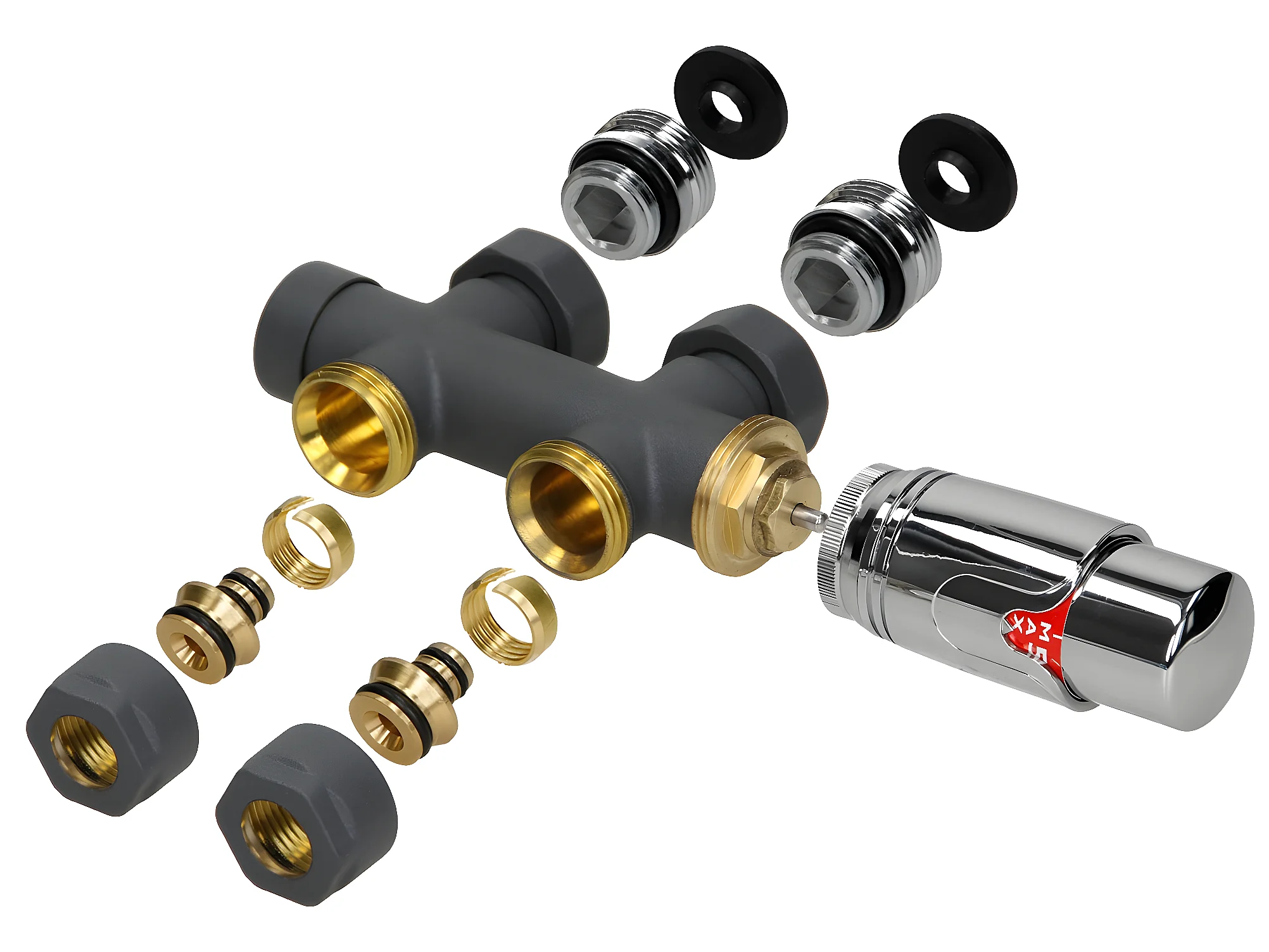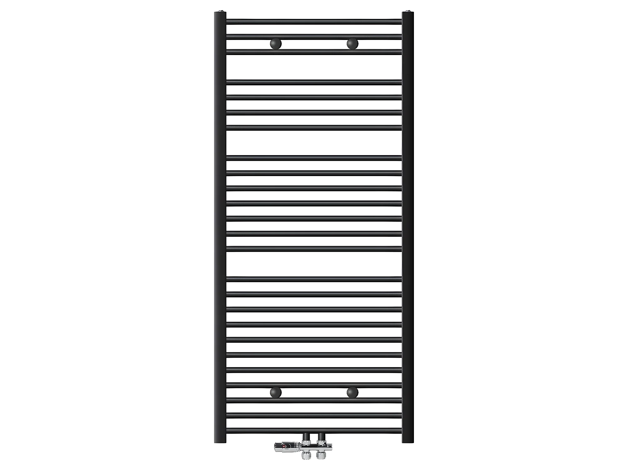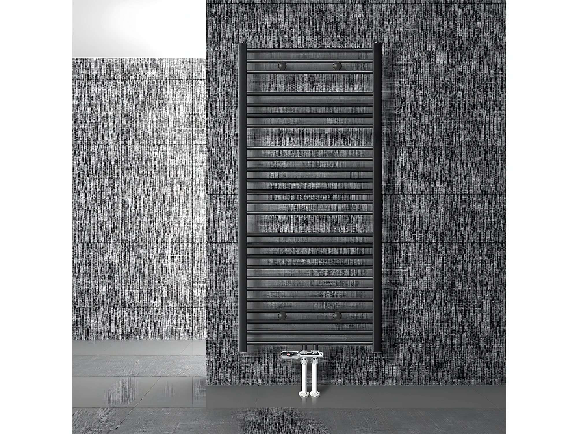 ECD Germany Radiateur de salle de bain raccordement central 750 x 1500 mm anthracite courbé avec thermostat et kit de raccordement passage au sol