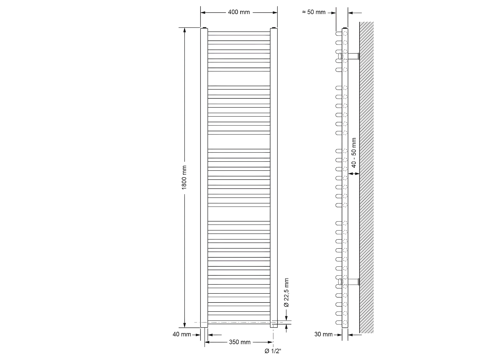 ECD Germany Radiateur Design Sahara - 400 x 1800 mm - Blanc - Connexion Latéral - Forme Courbé