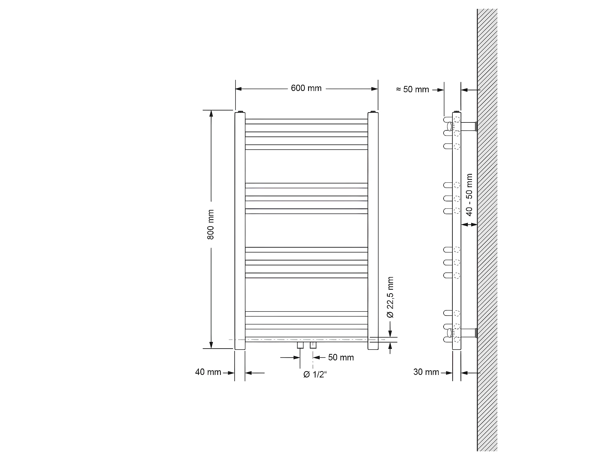 ECD Germany Radiateur Design Sahara Non Electrique - 600 x 800 mm - Chrome - Connexion Central Mural d'Angle et Thermostat - Forme Courbé
